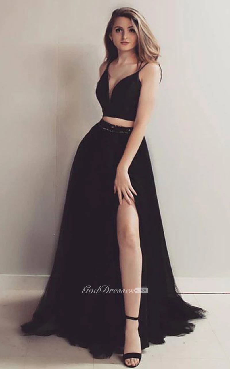 Satin Tulle Floor-length Sweep Train Two Piece Sleeveless Informal Evening Dress