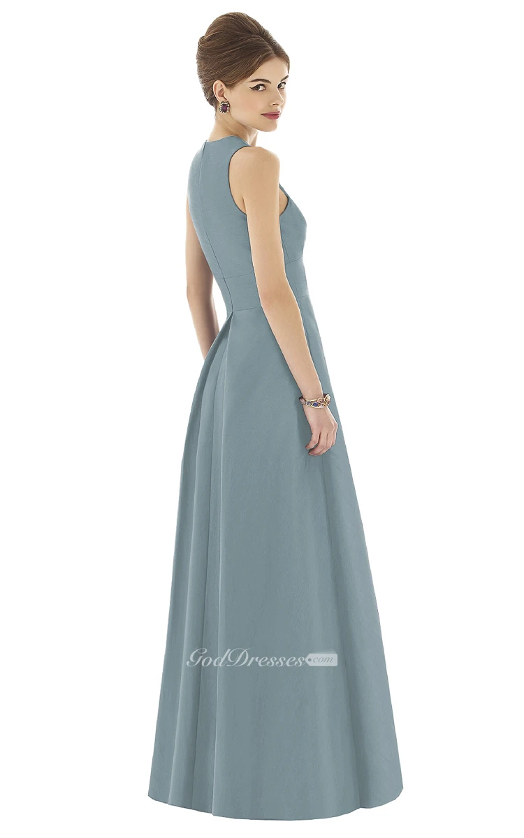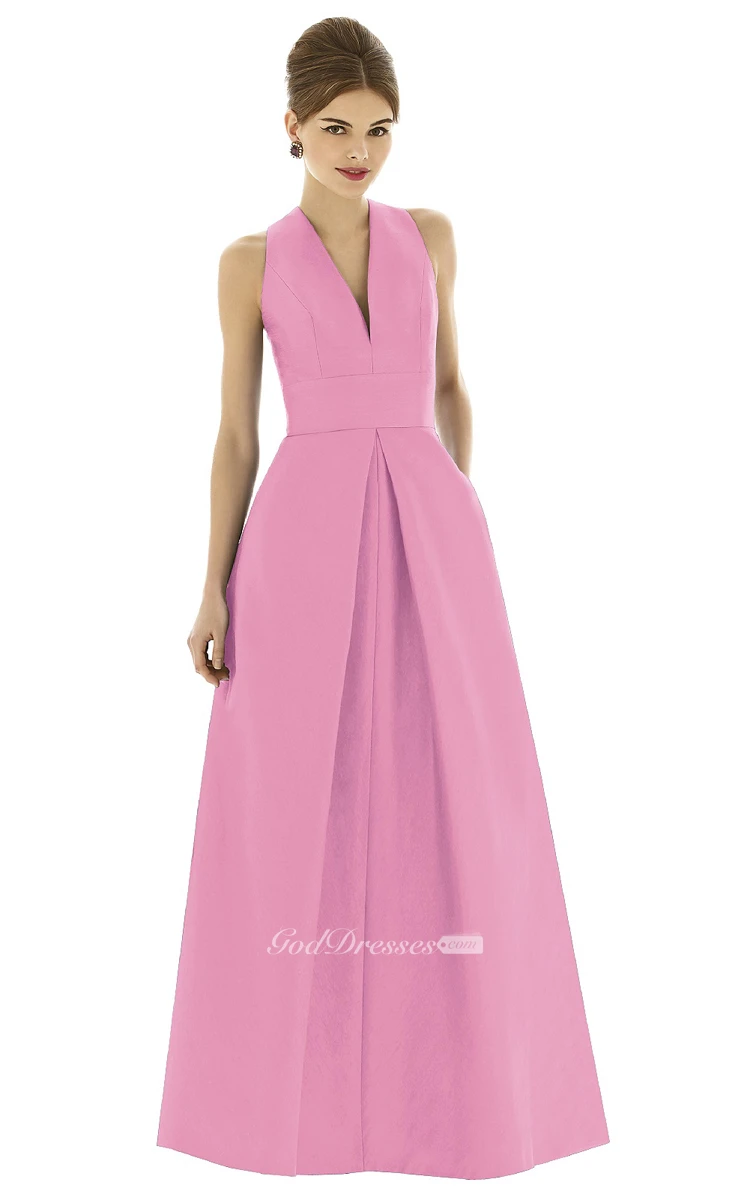 Satin Unique Sleeveless Gown With Pockets