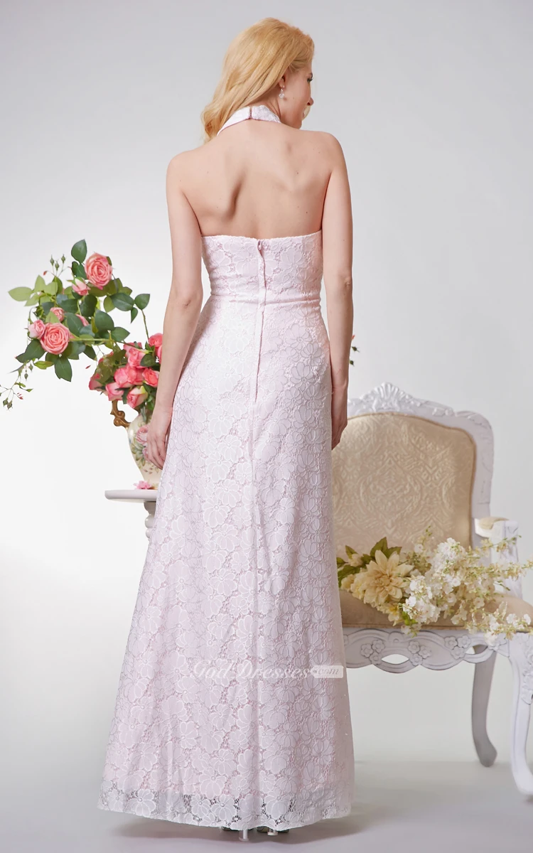 Scalloped-Edge Neckline Ruched Long Lace Dress