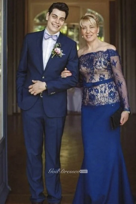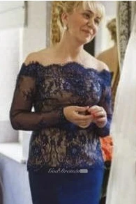 Scalloped Off-the-shoulder Sheath Lace Long Dress With Long Sleeve