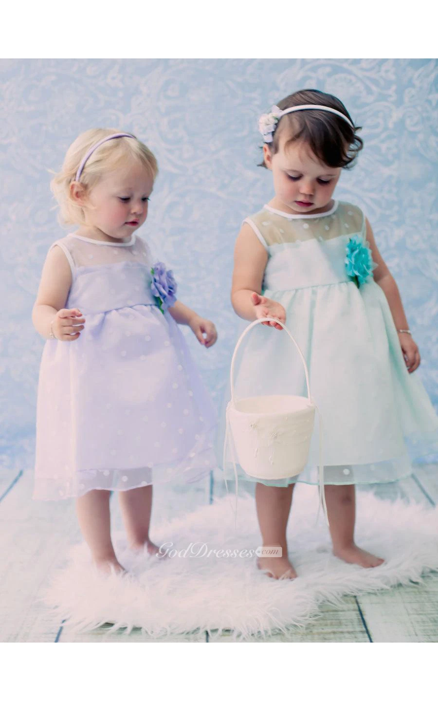 Scoop Illusion Neckline Sleeveless Empire Organza Short Dress With Flower