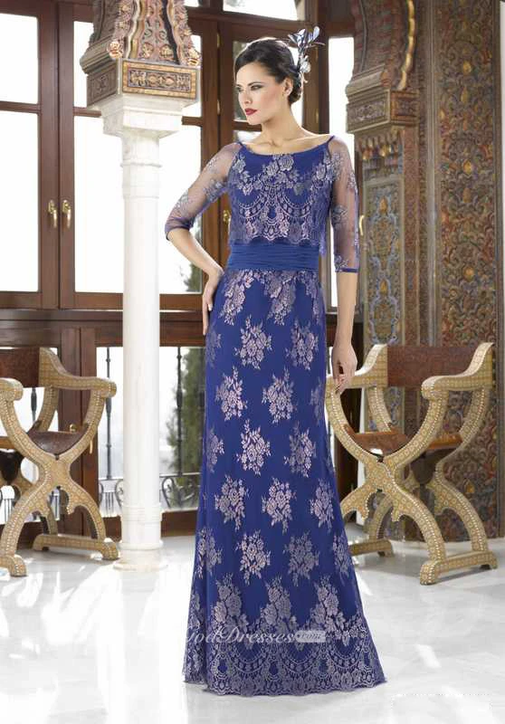 Scoop Neck Appliqued Illusion Sleeve Chiffon Mother Of The Bride Dress