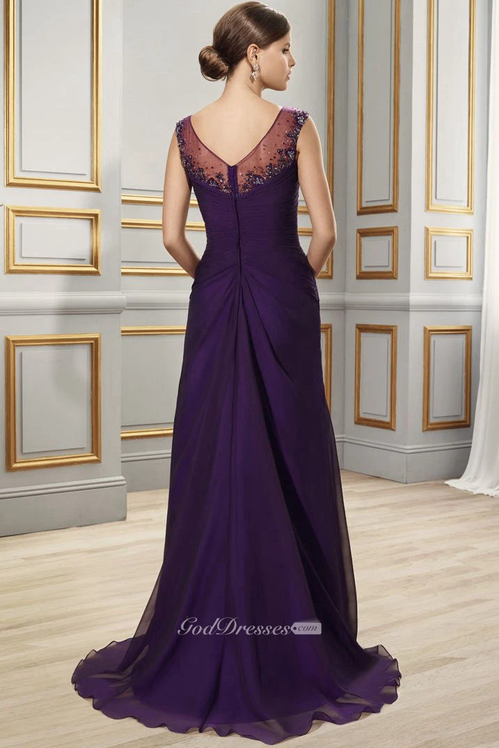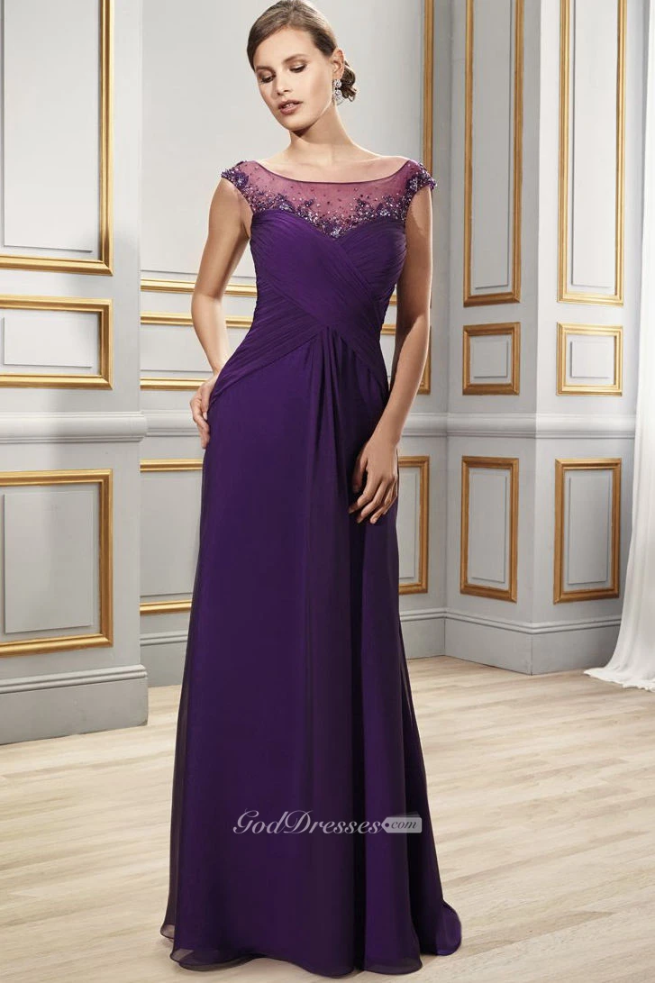 Scoop Neck Cap Sleeve Criss-Cross Chiffon Formal Dress