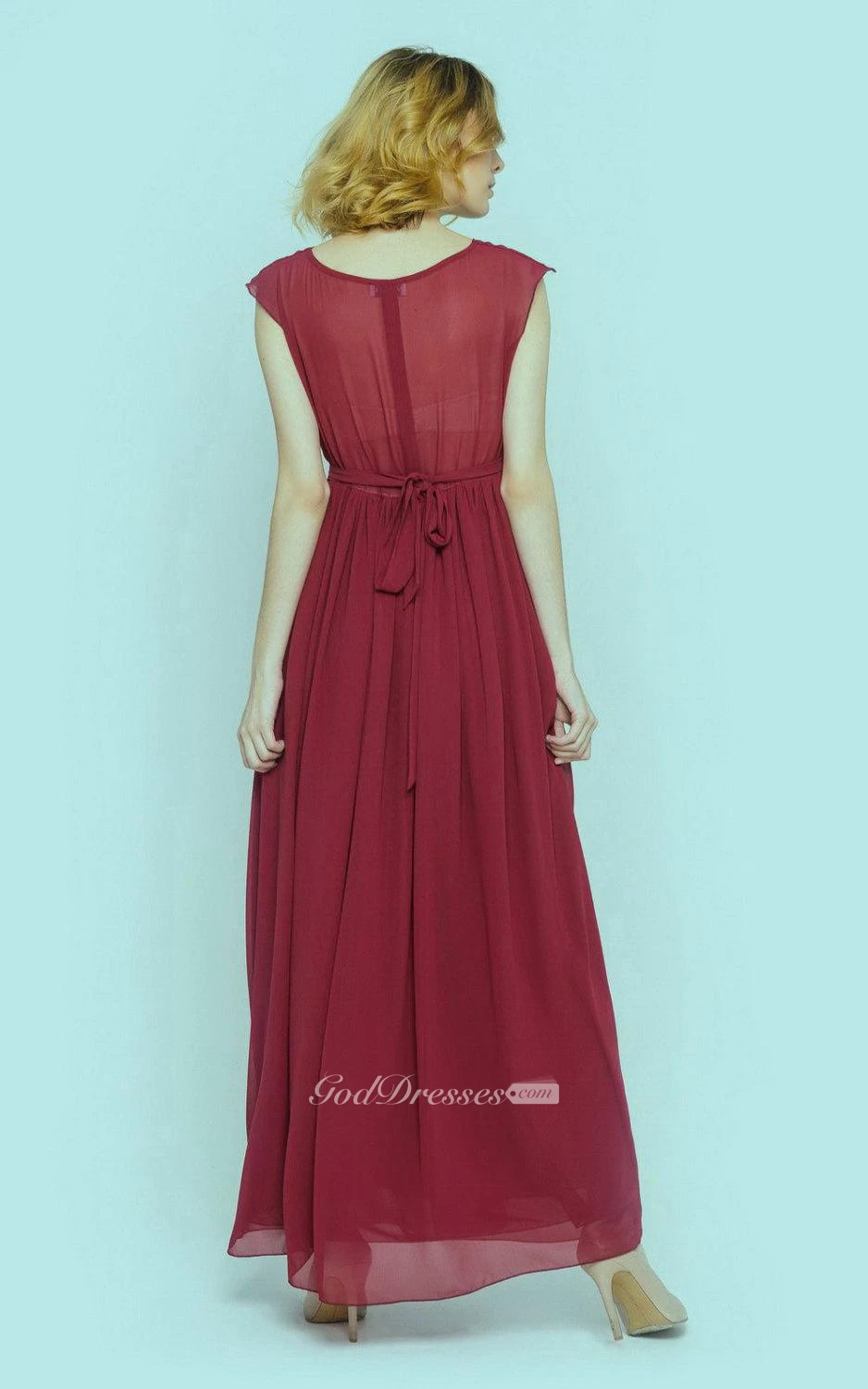 Scoop Neck Cap Sleeve Empire A-line Chiffon Long Dress With Pleats