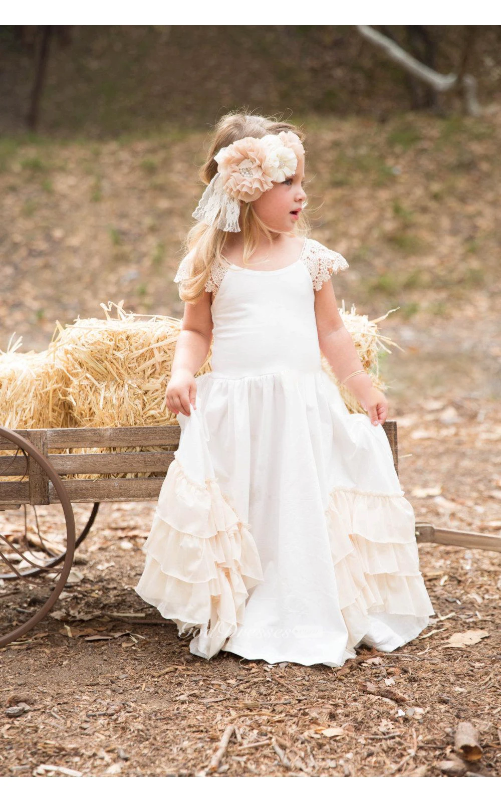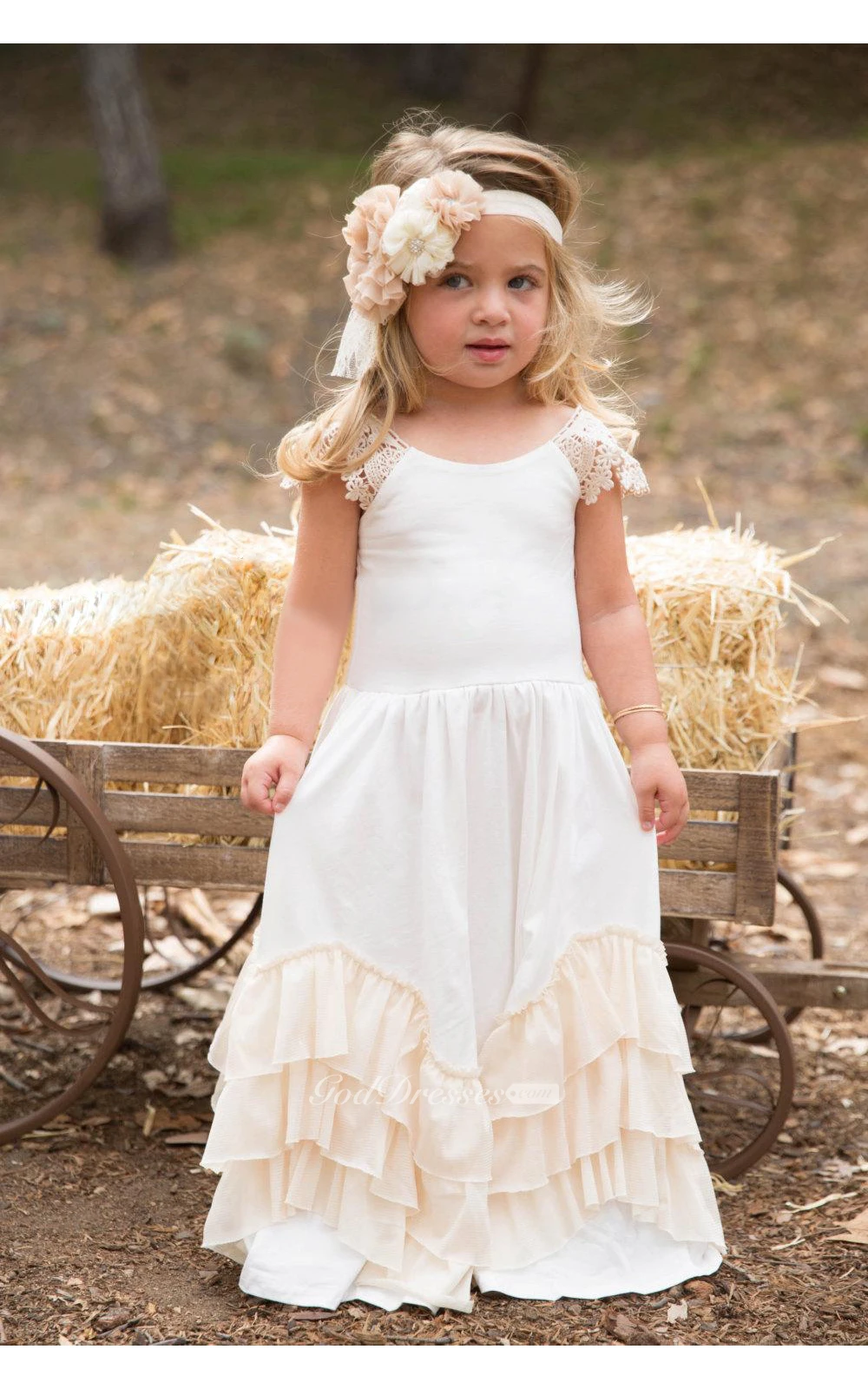 Scoop Neck Lace Cap Sleeve A-line Jersey Long Dress With Ruffles