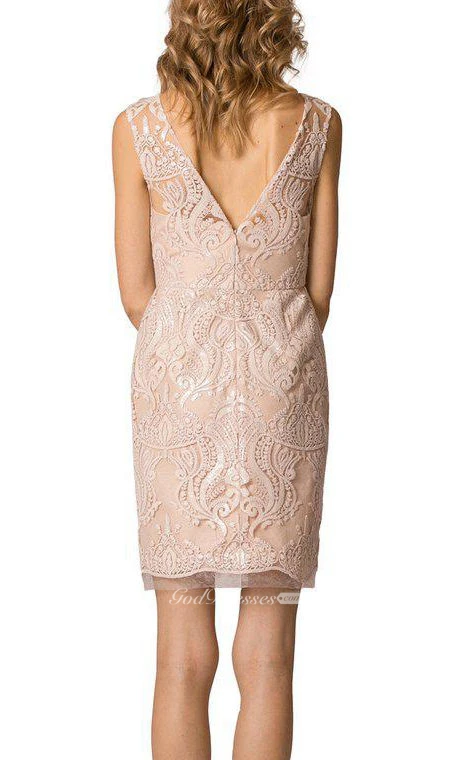 Scoop Neck Lace Short Bridesmaid Dress