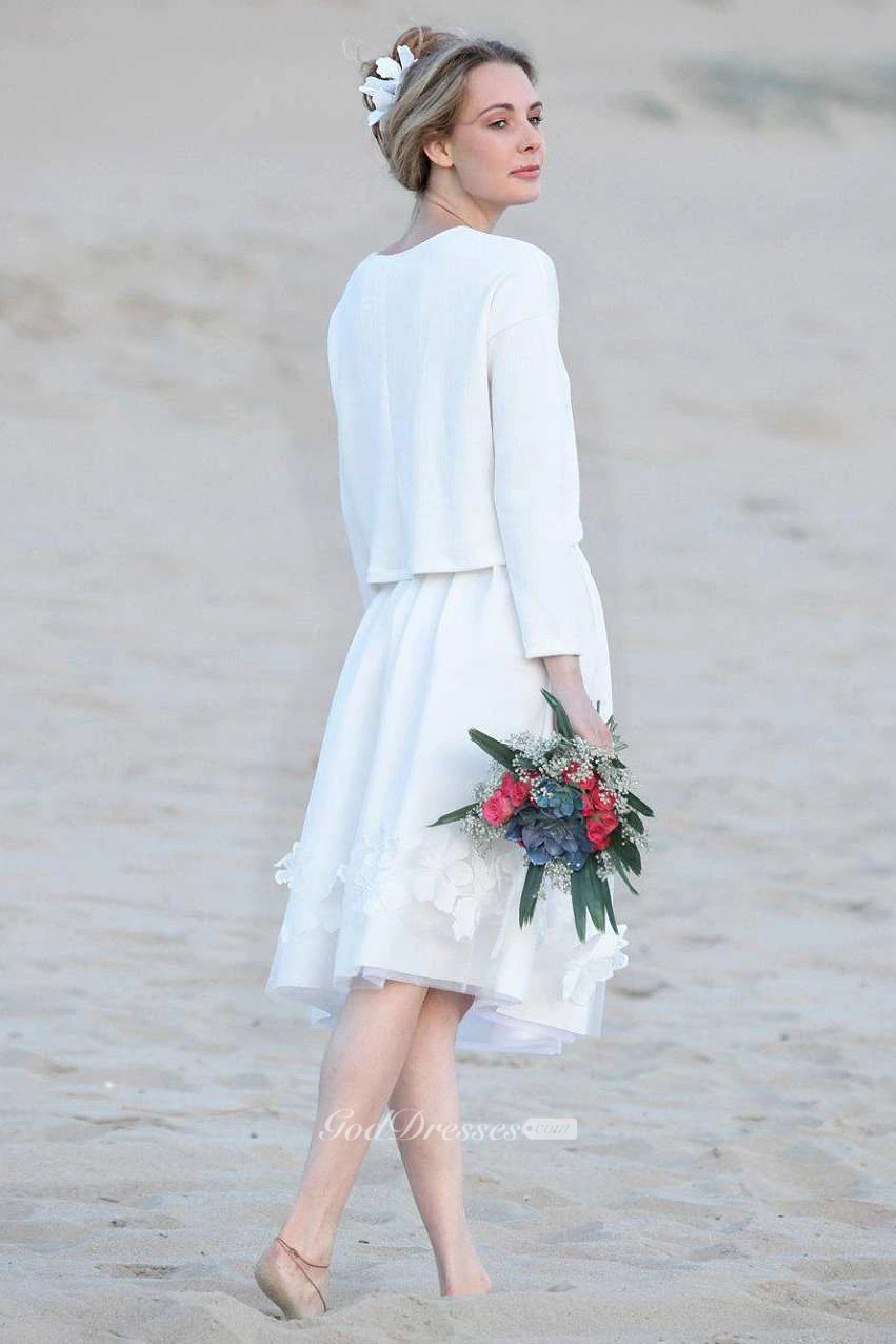 Scoop-Neck Long Sleeve Knee-Length Dress With Appliques