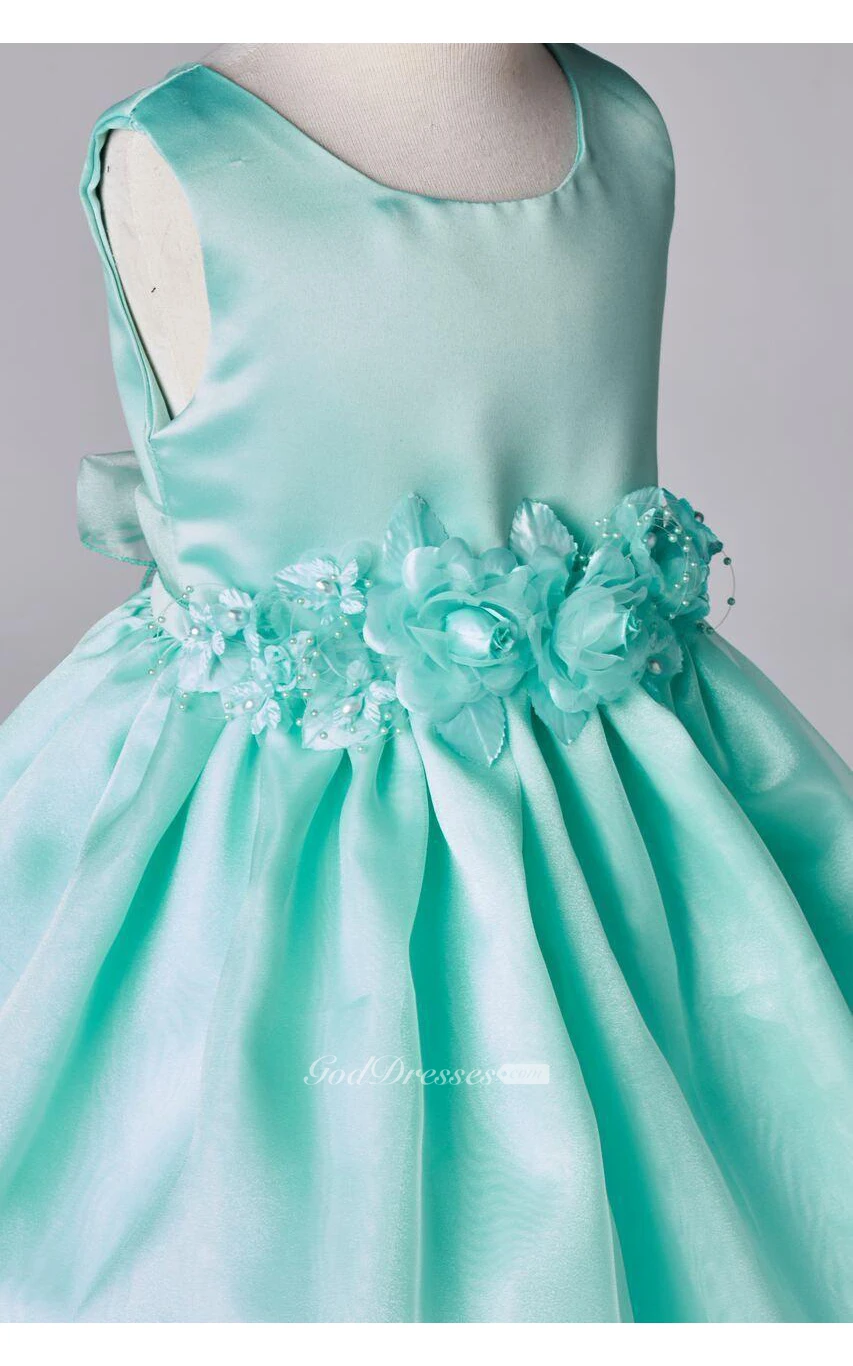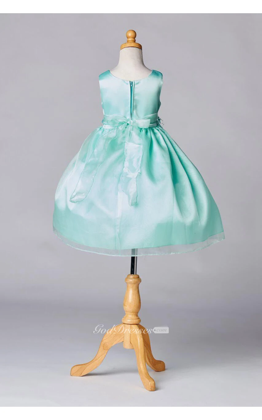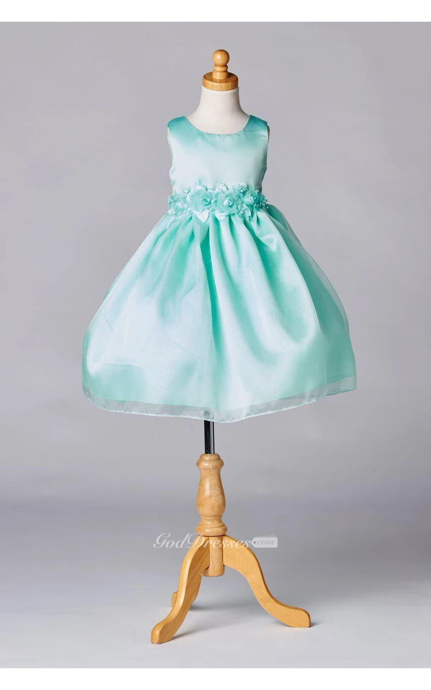 Scoop Neck Sleeveless A-line Ankle Length Organza Dress With Flower Sash