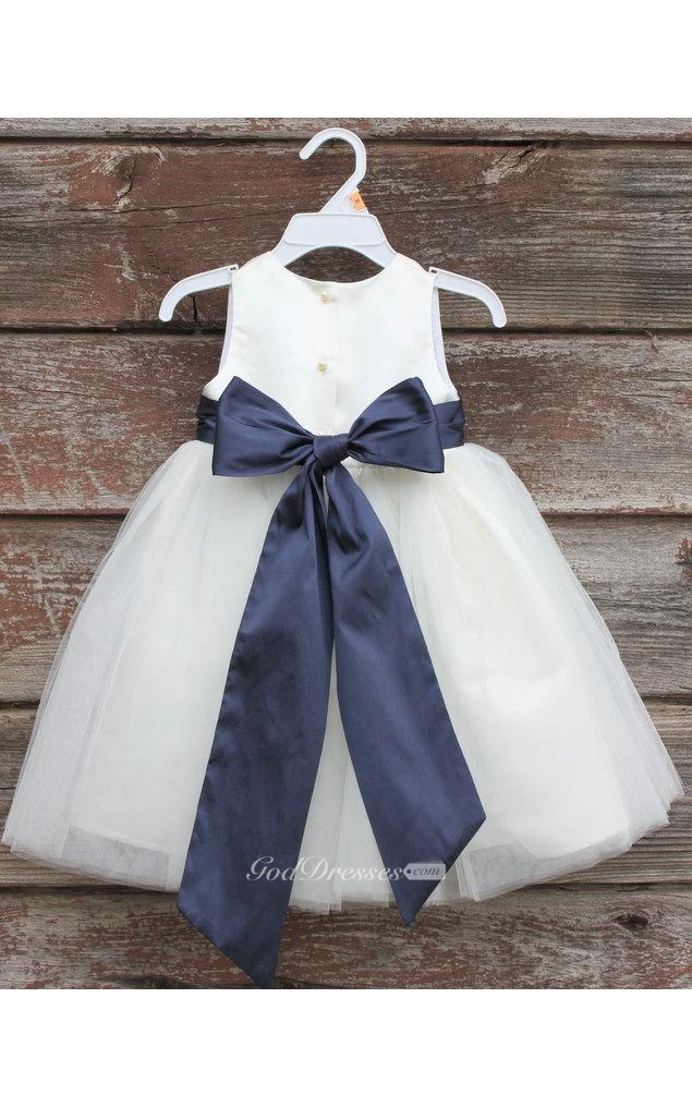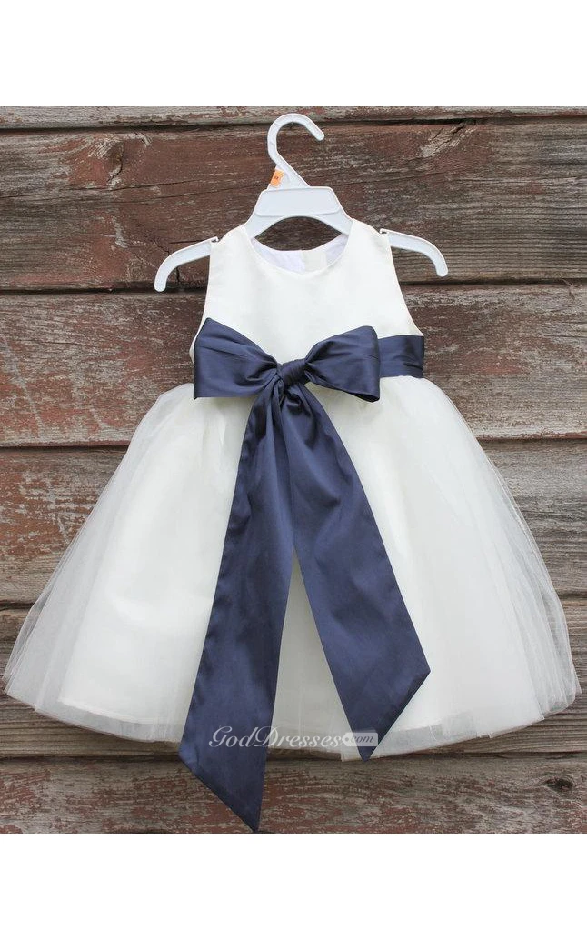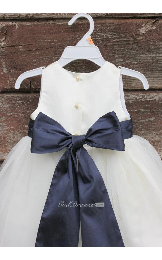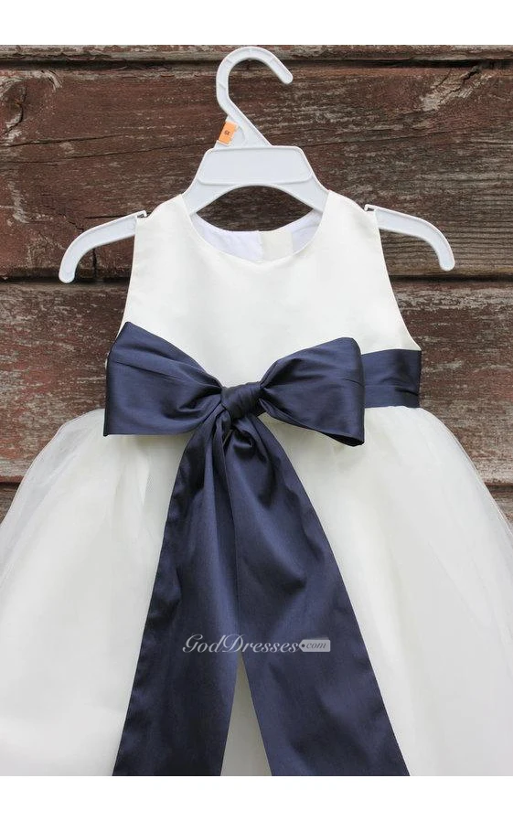 Scoop Neck Sleeveless A-line Ankle Length Tulle Dress With Sash