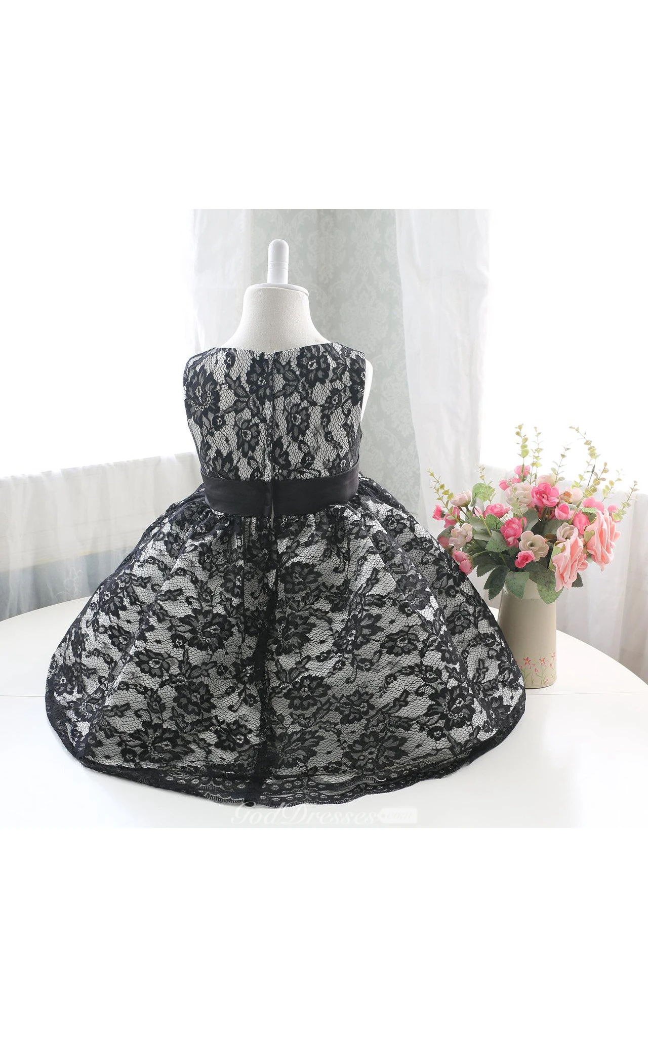 Scoop Neck Sleeveless A-line Lace Tea Length Dress With Sash
