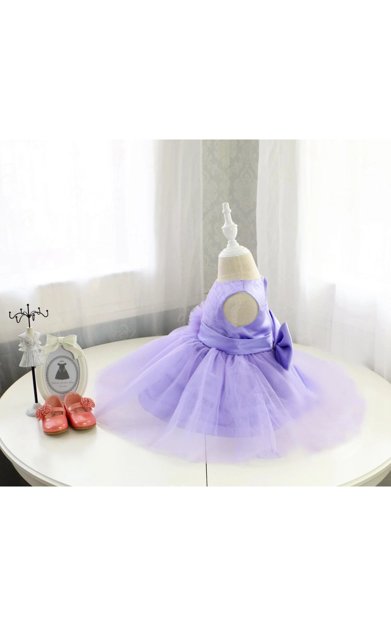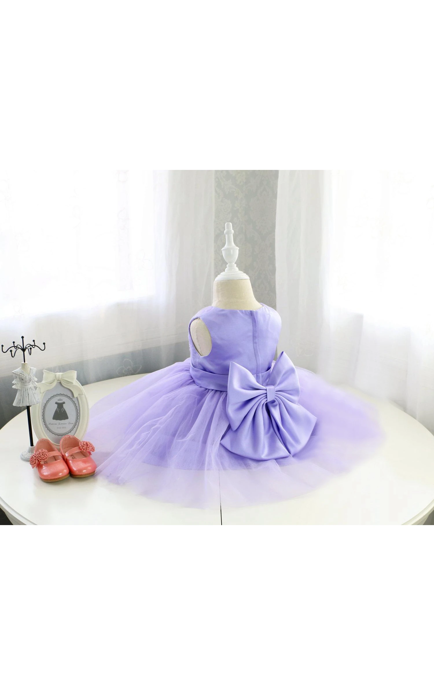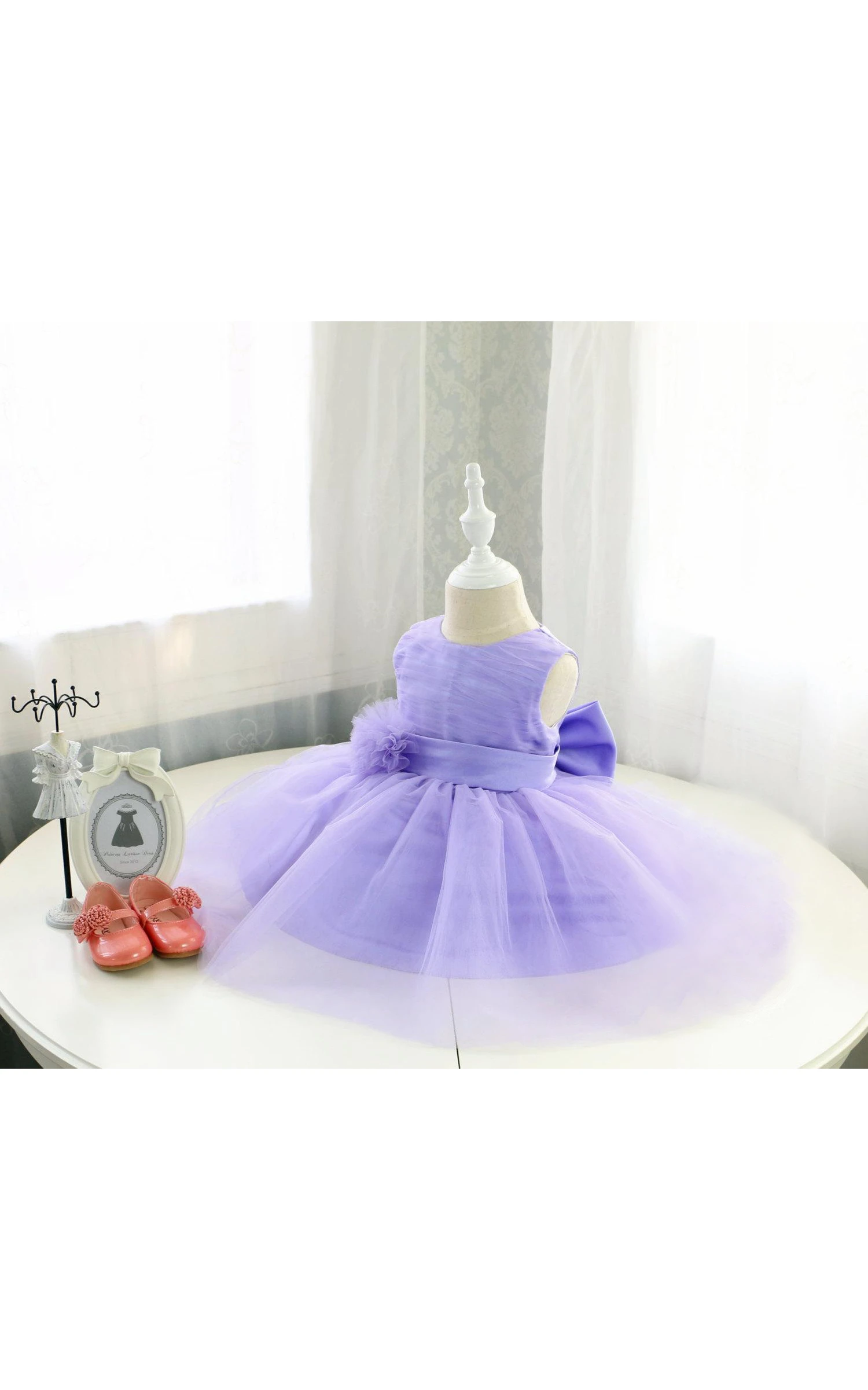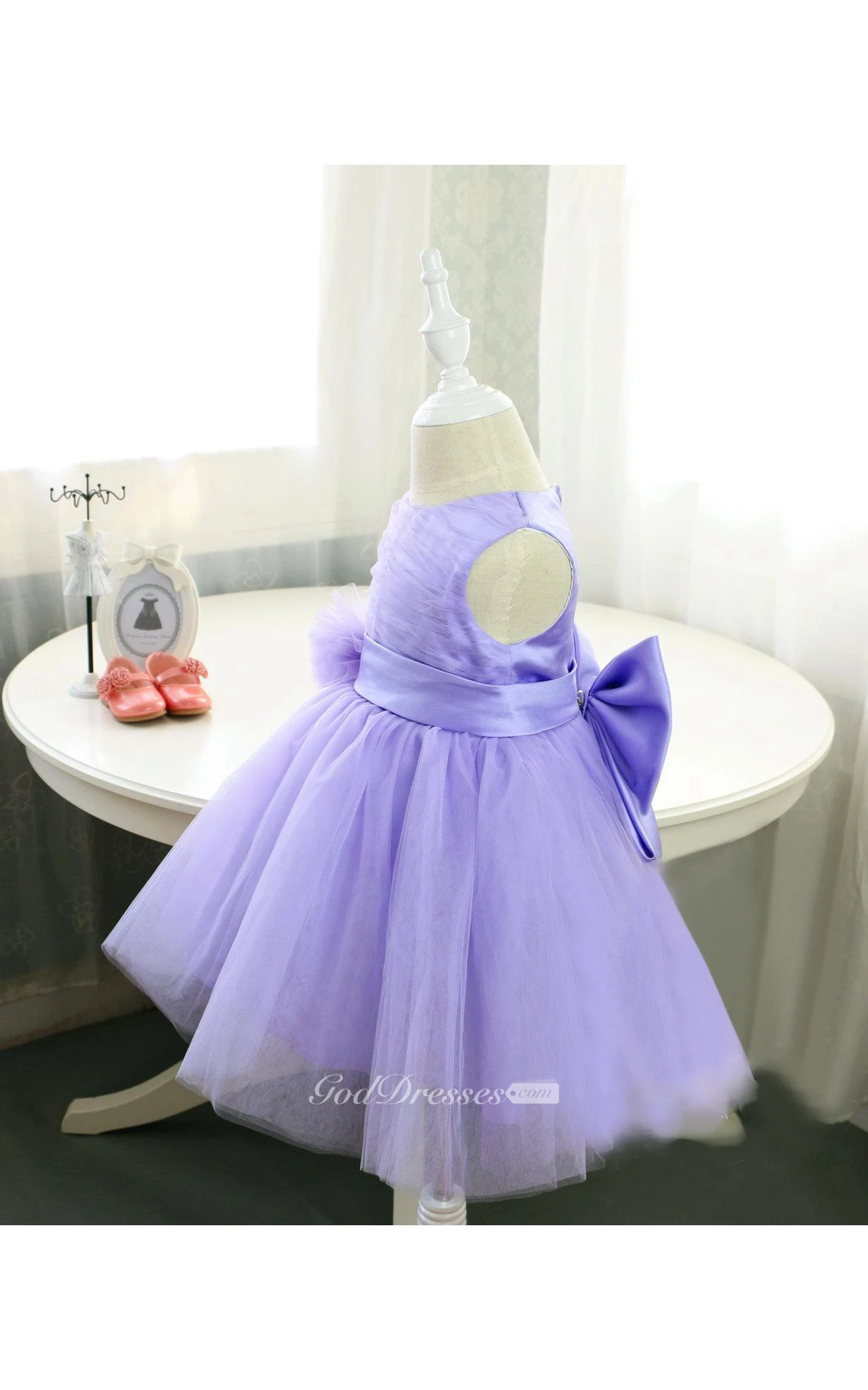 Scoop Neck Sleeveless A-line Pleated Tulle Ball Gown With Flower and Bow