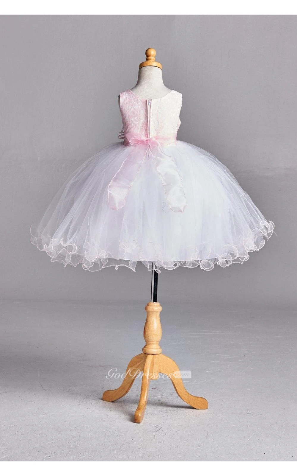 Scoop Neck Sleeveless Empire Tulle Ball Gown With Flower Sash