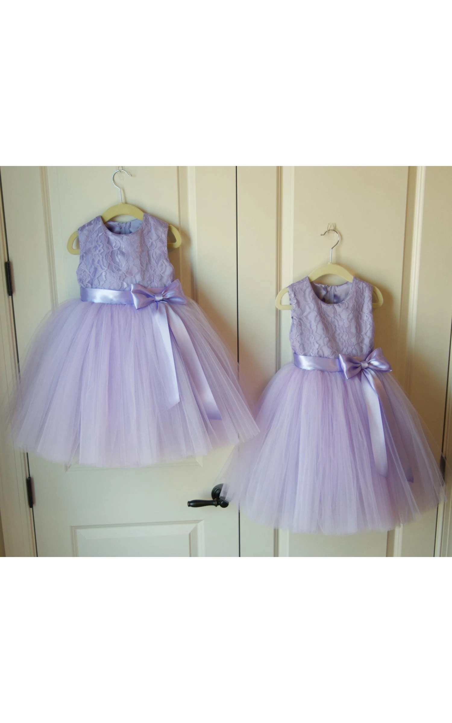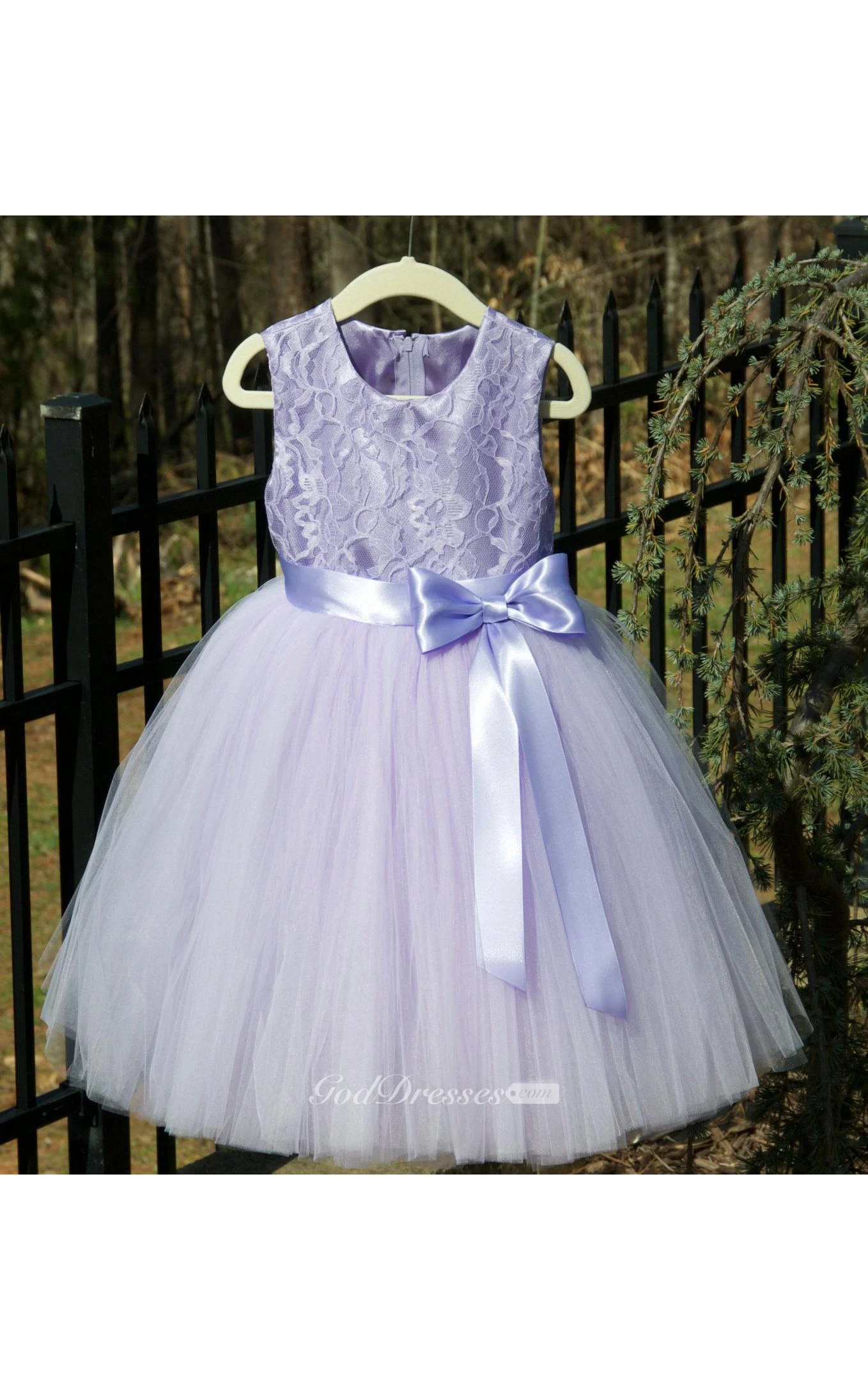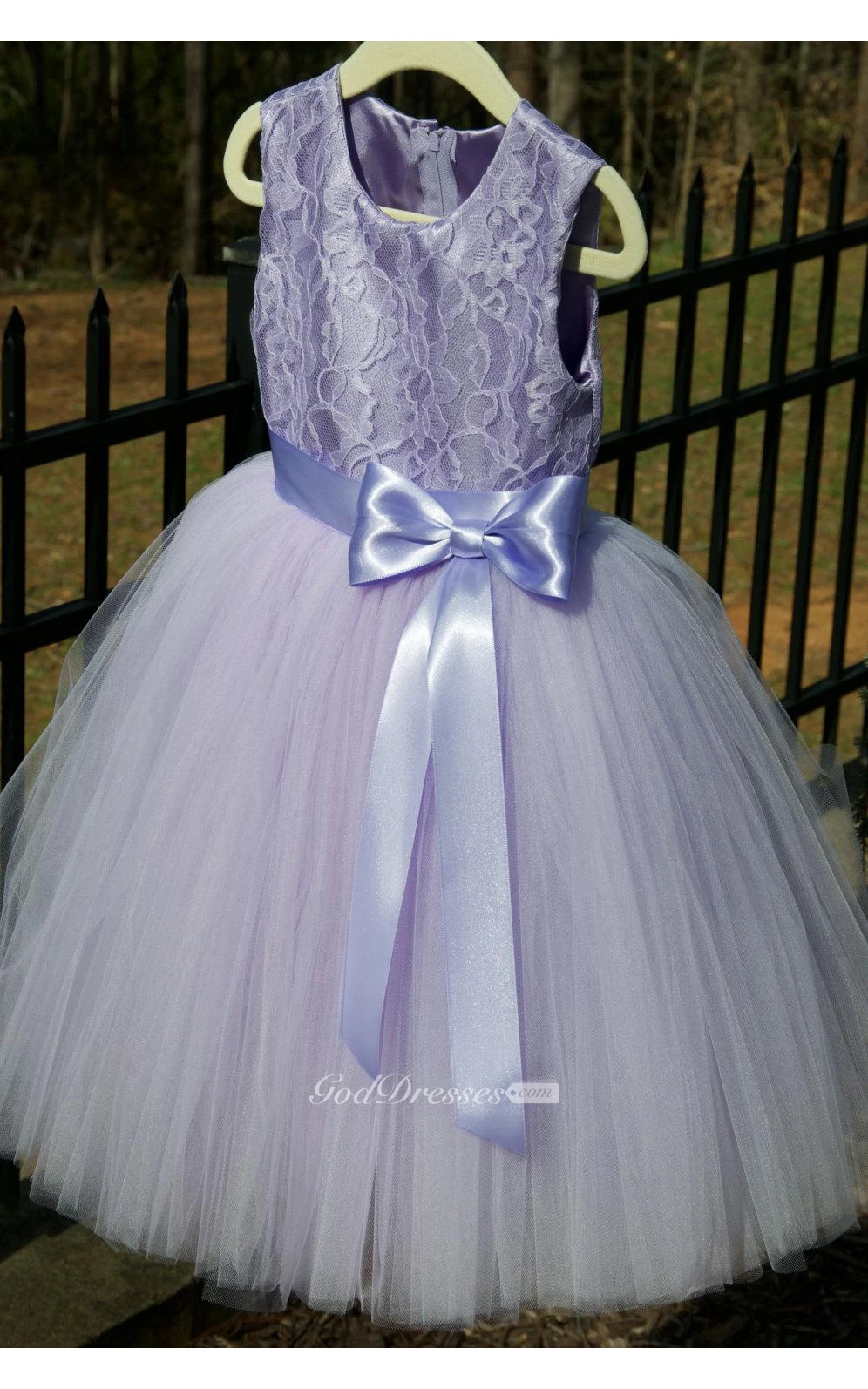 Scoop Neck Sleeveless Lace Bodice Tulle Ball Gown With Bow Sash