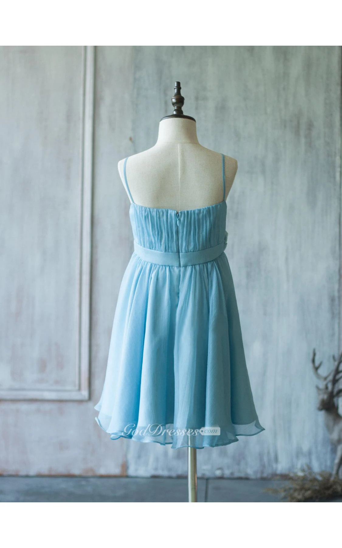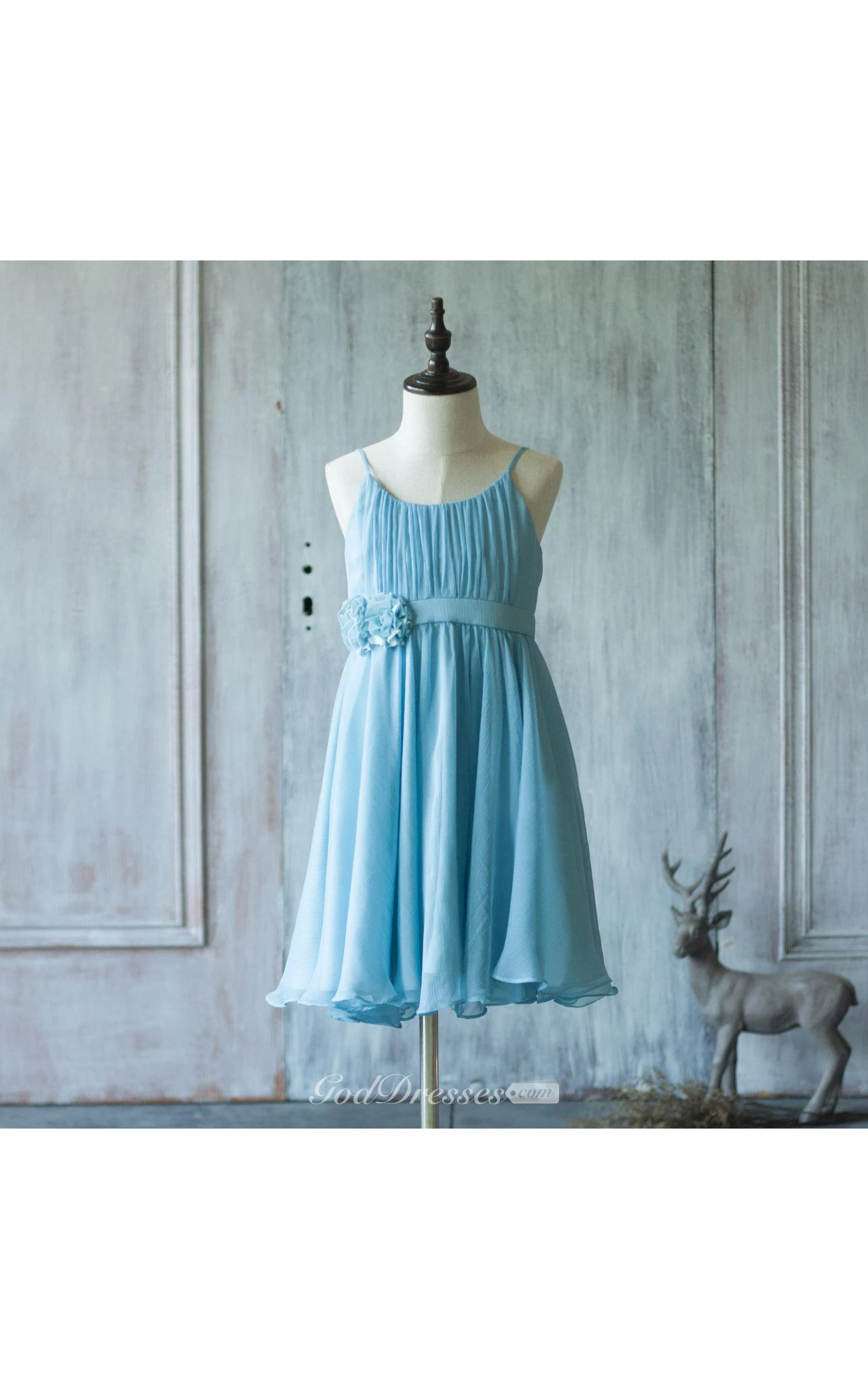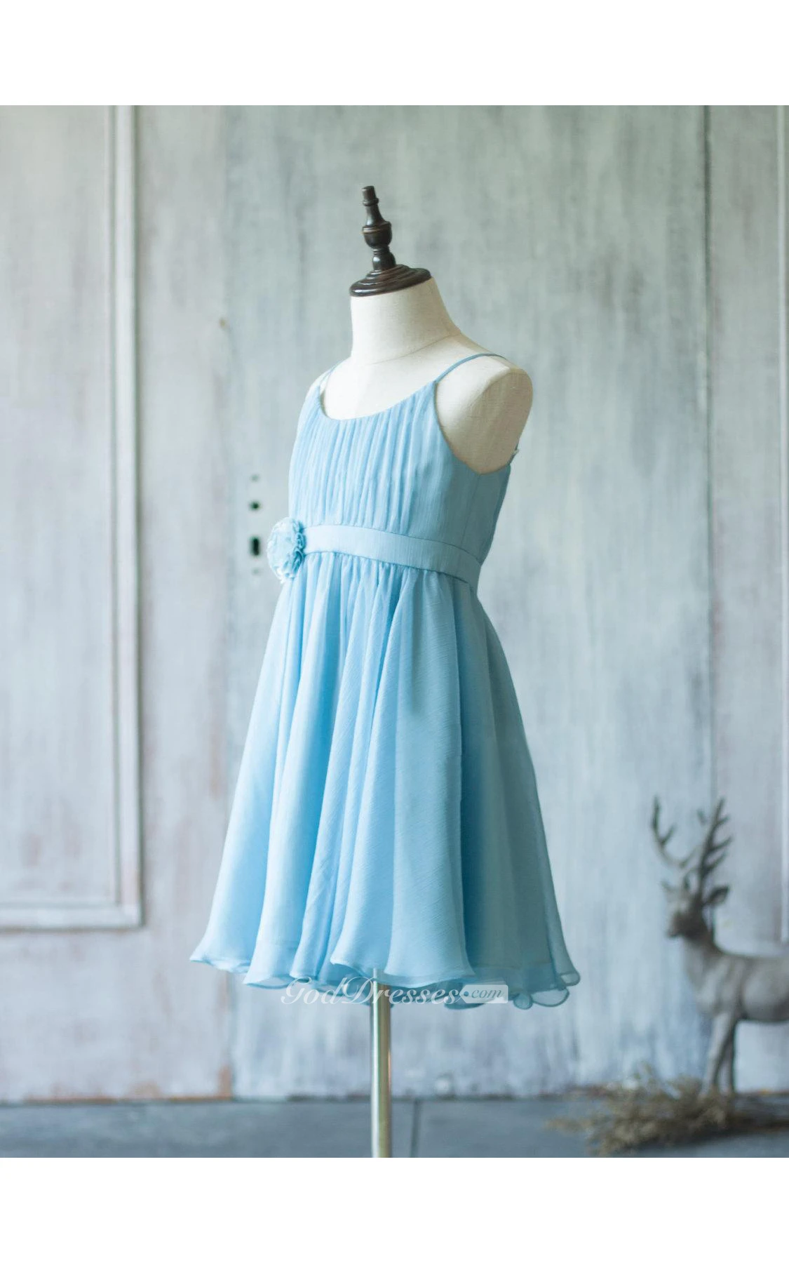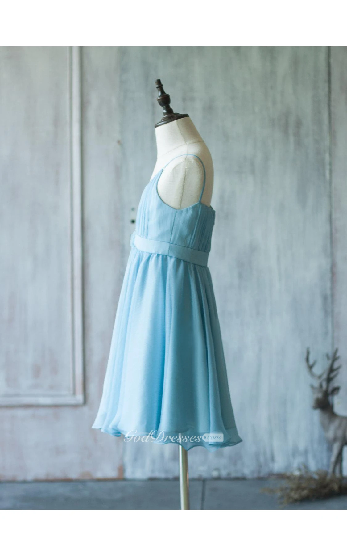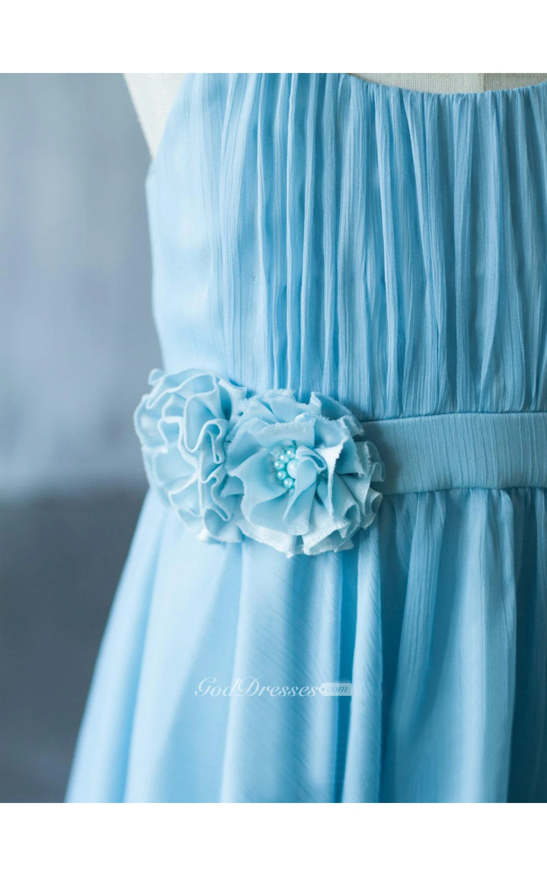 Scoop Neck Spaghetti Straps A-line Chiffon Long Dress With Pleats