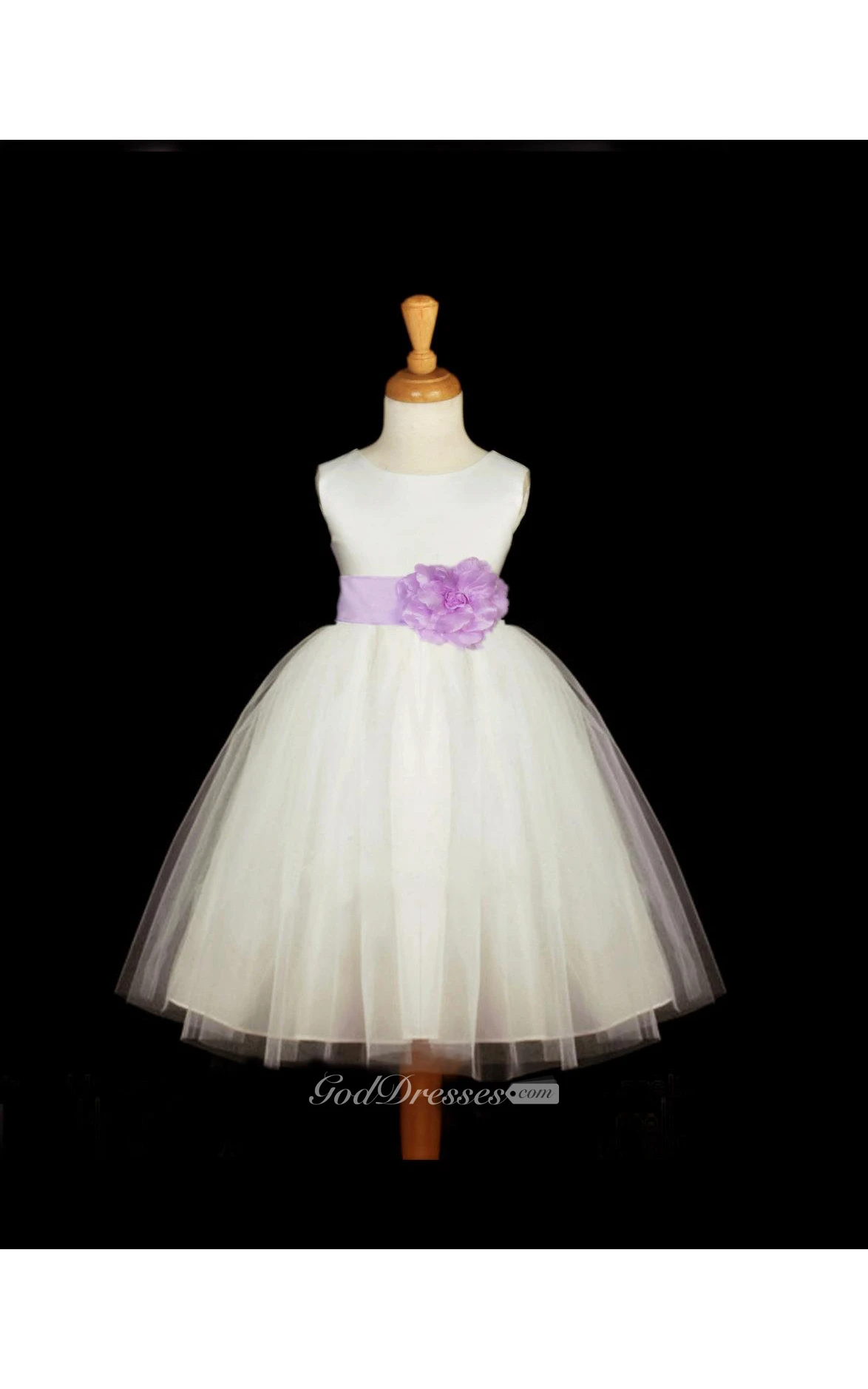 Scoop Neckline Sleeveless Empire Tulle Ball Gown With Floral Sash