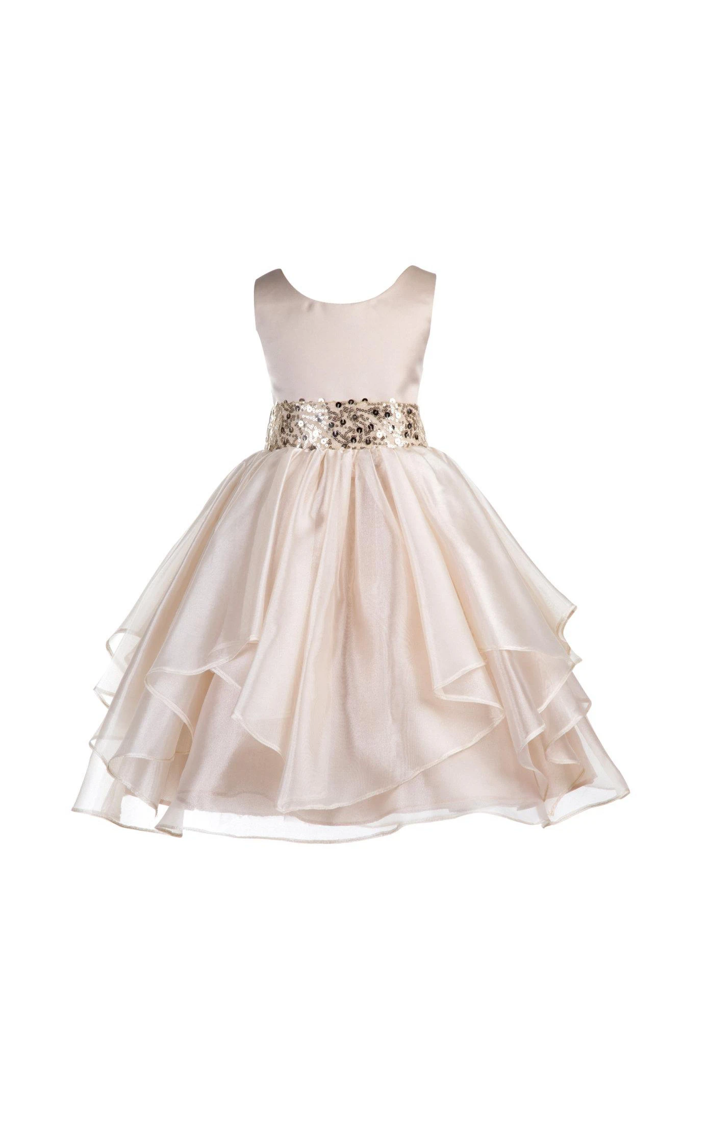 Scoop Neckline Sleeveless Layered Organza Ball Gown With Sequined Sash