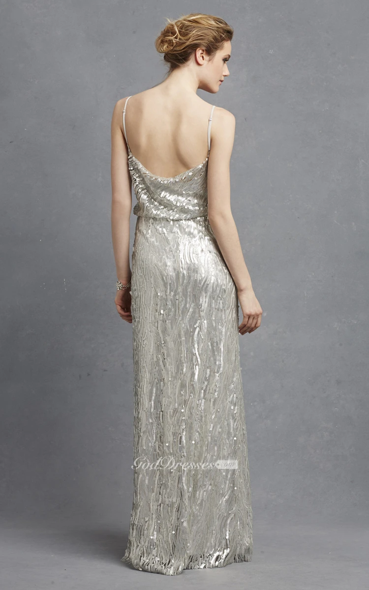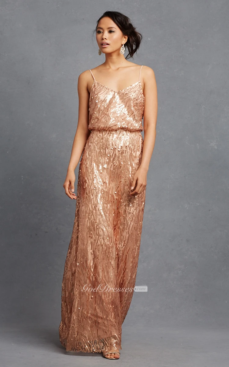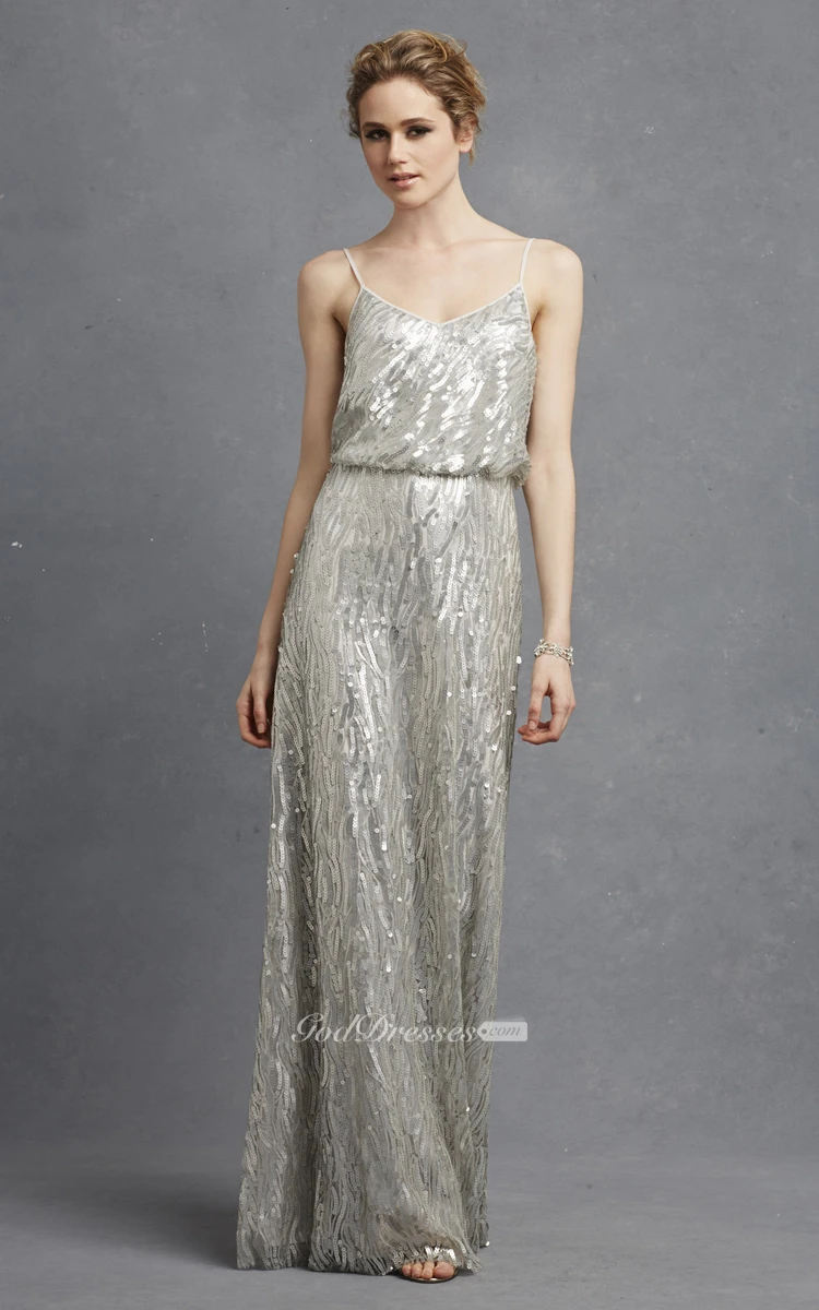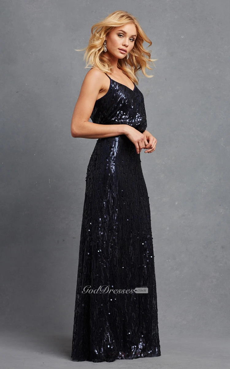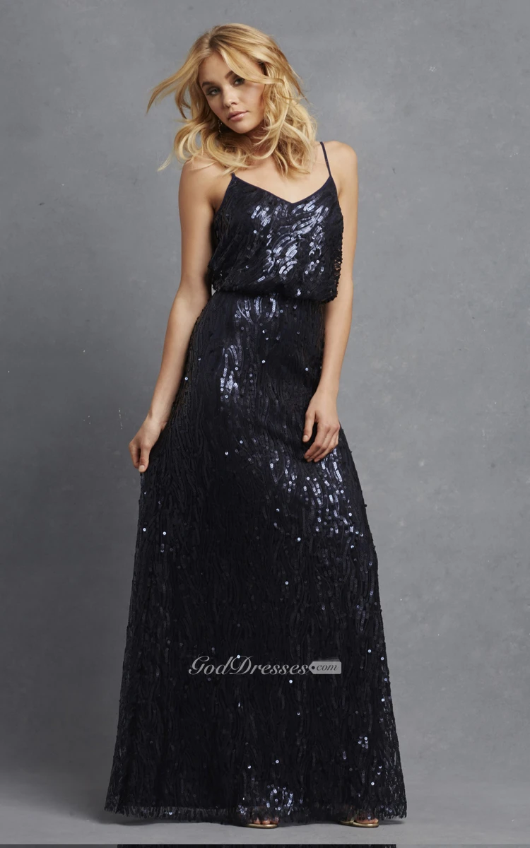 Sequined Chic Long A-Line Dress With Spaghetti Straps