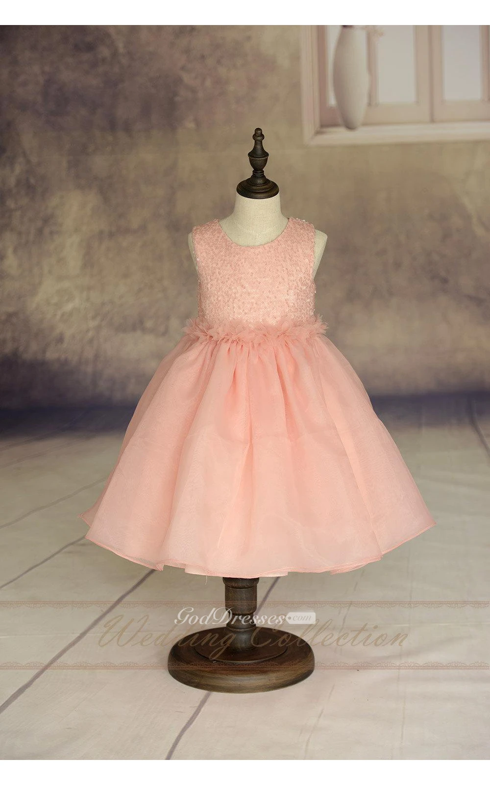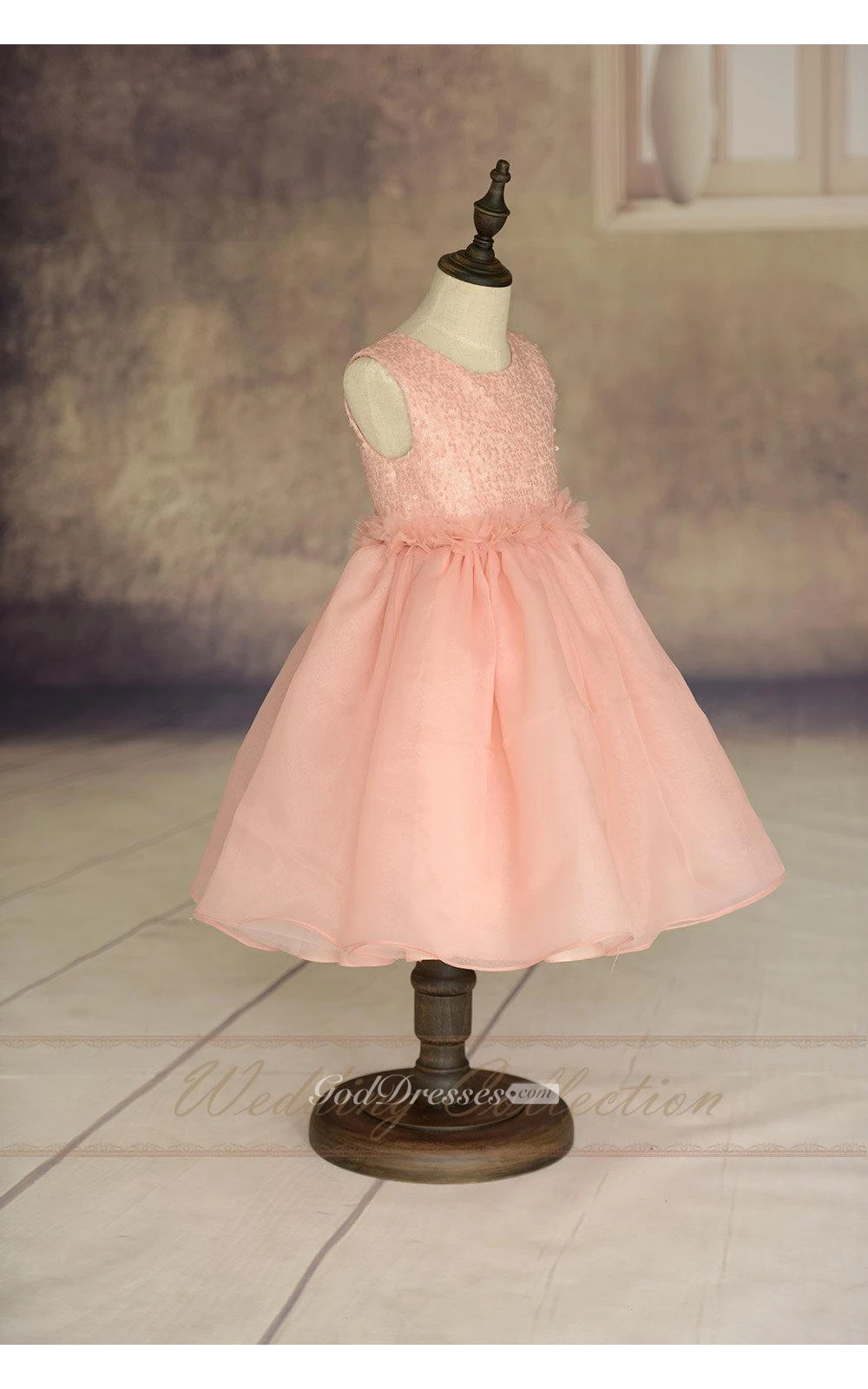 Sequined Scoop Neck Sleeveless Tea Length Organza Dress Floral Waist
