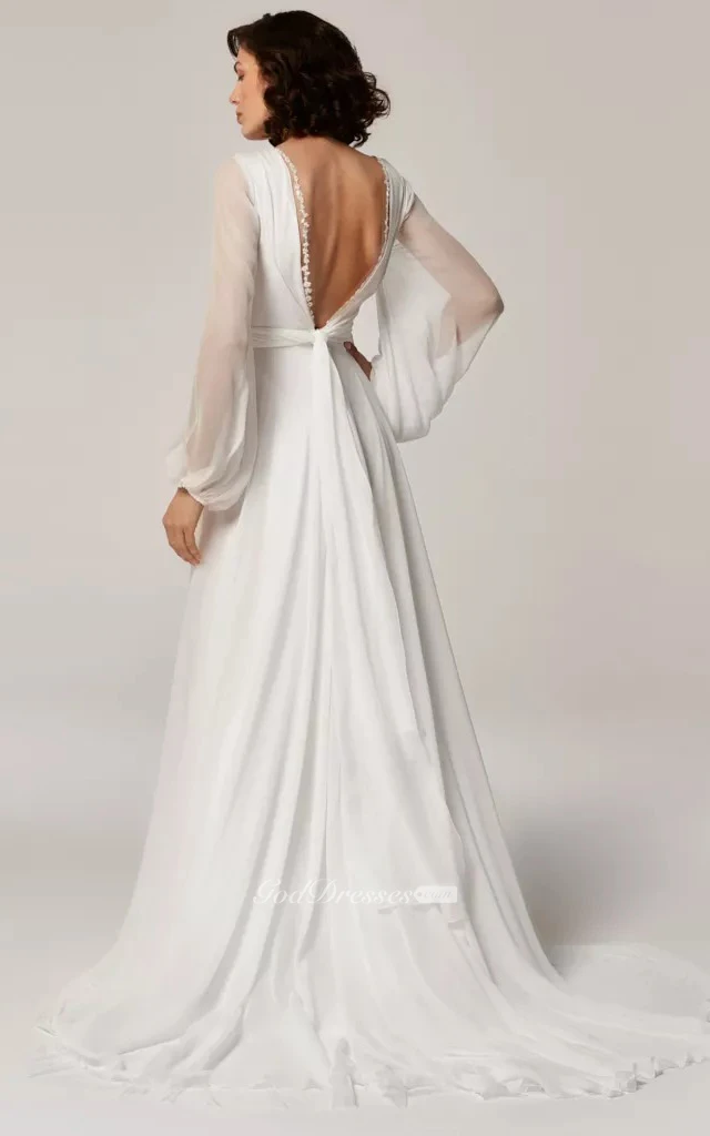 Sexy A Line Chiffon 3/4 Length Sleeve Poet Wedding Dress with Ruching
