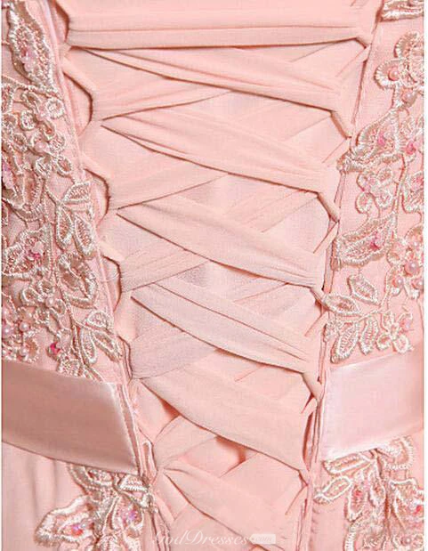 Sexy A-line Jewel Chiffon Prom Dress Lace Appliques