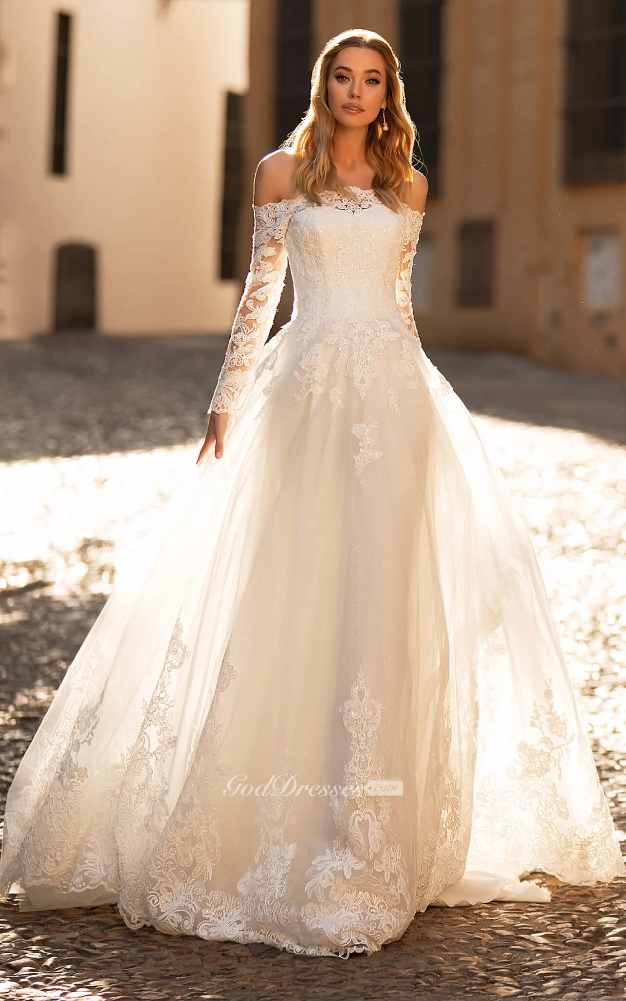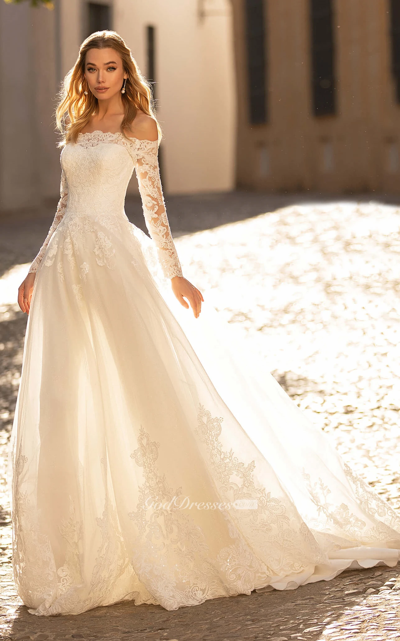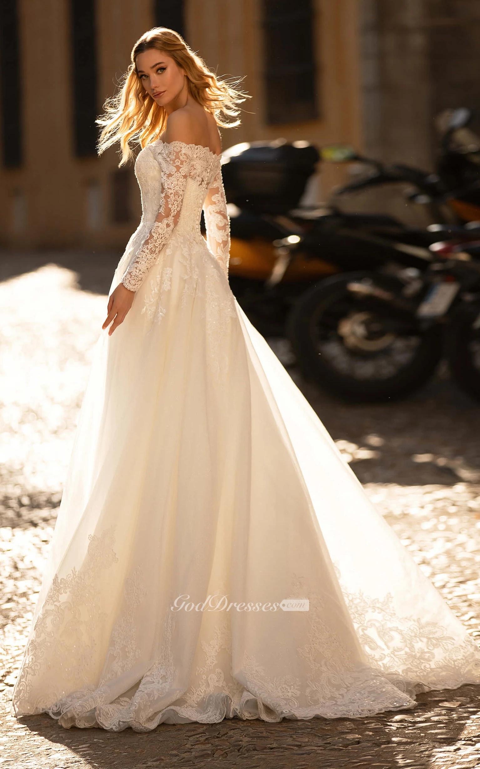 Sexy A Line Off-the-shoulder Court Train Wedding Dress with Appliques