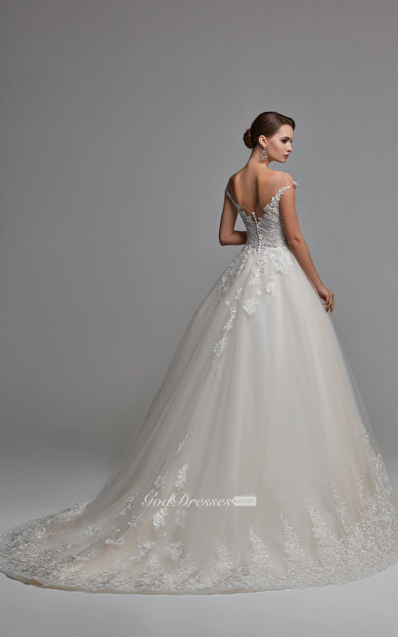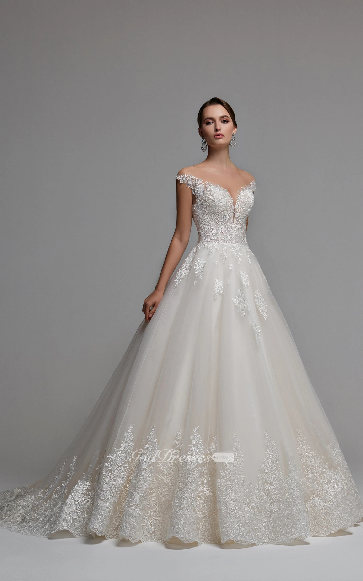 Sexy Ball Gown V-neck Tulle Wedding Gown with Appliques