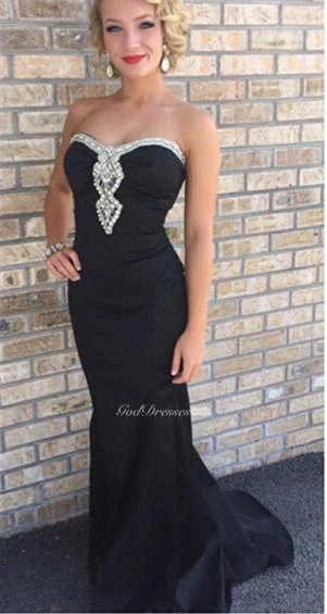Sexy Black Mermaid Beadings Prom Dress Sweep Train Sleeveless