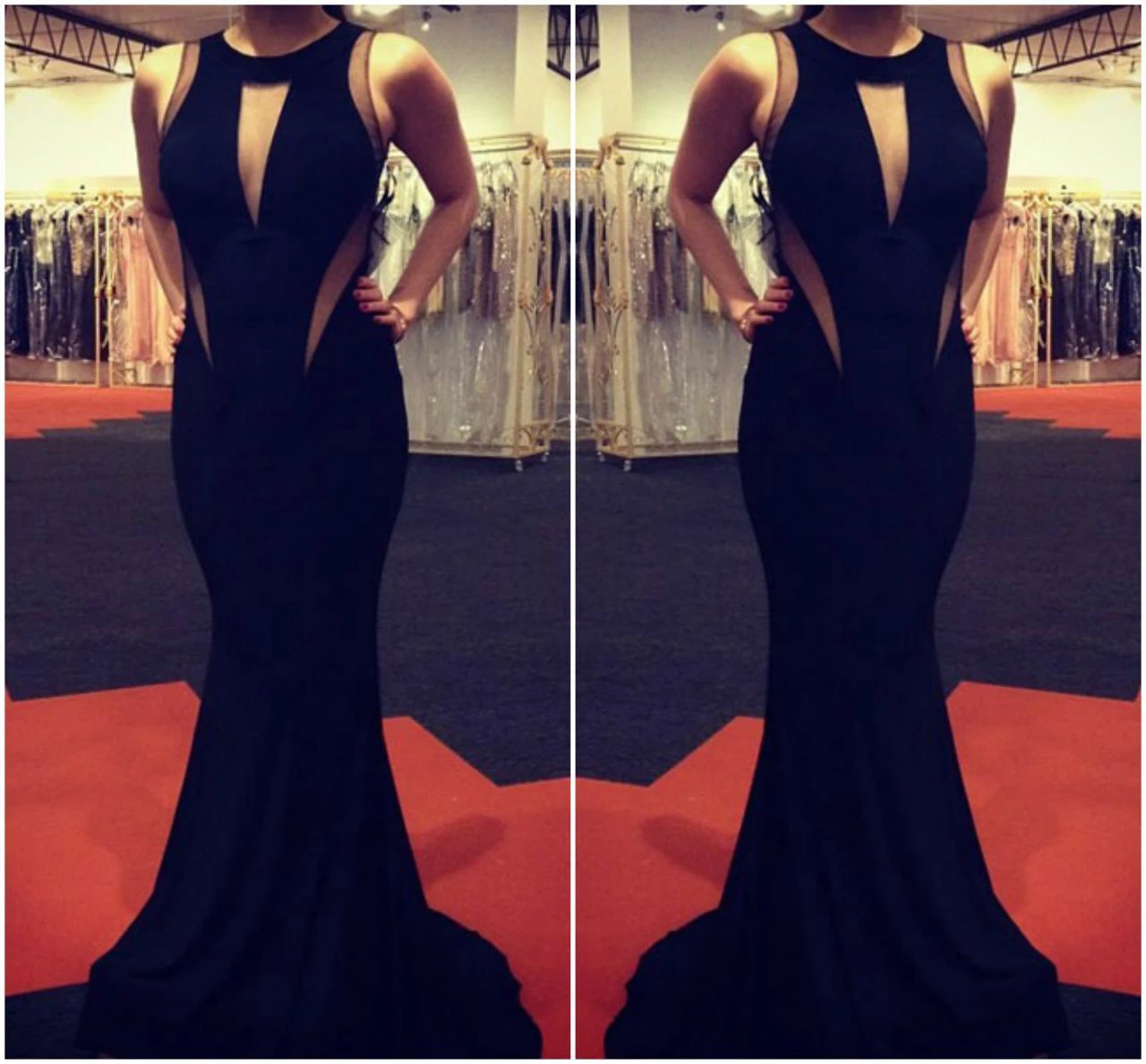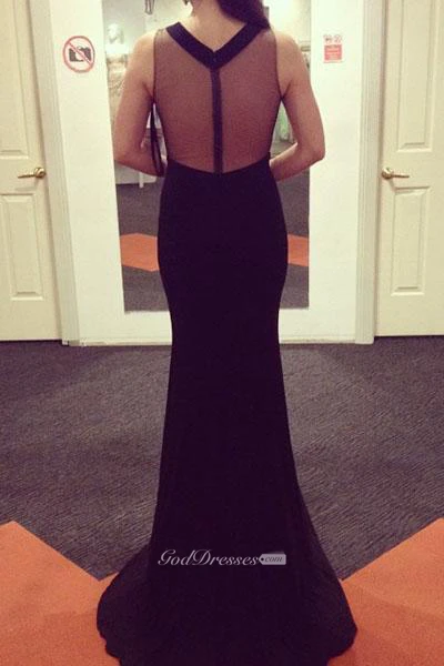 Sexy Black Sleeveless Mermaid Prom Dresses Floor Length
