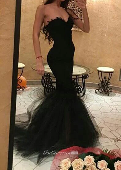 Sexy Black Sweetheart Mermaid Prom Dress With Ruffles