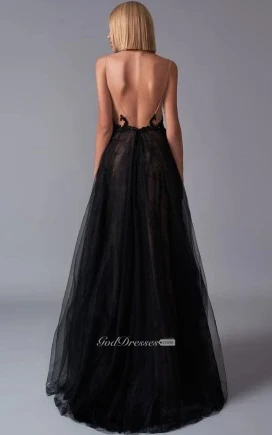 Sexy Brush Train Sleeveless Tulle A Line Backless Prom Dress with Ruching