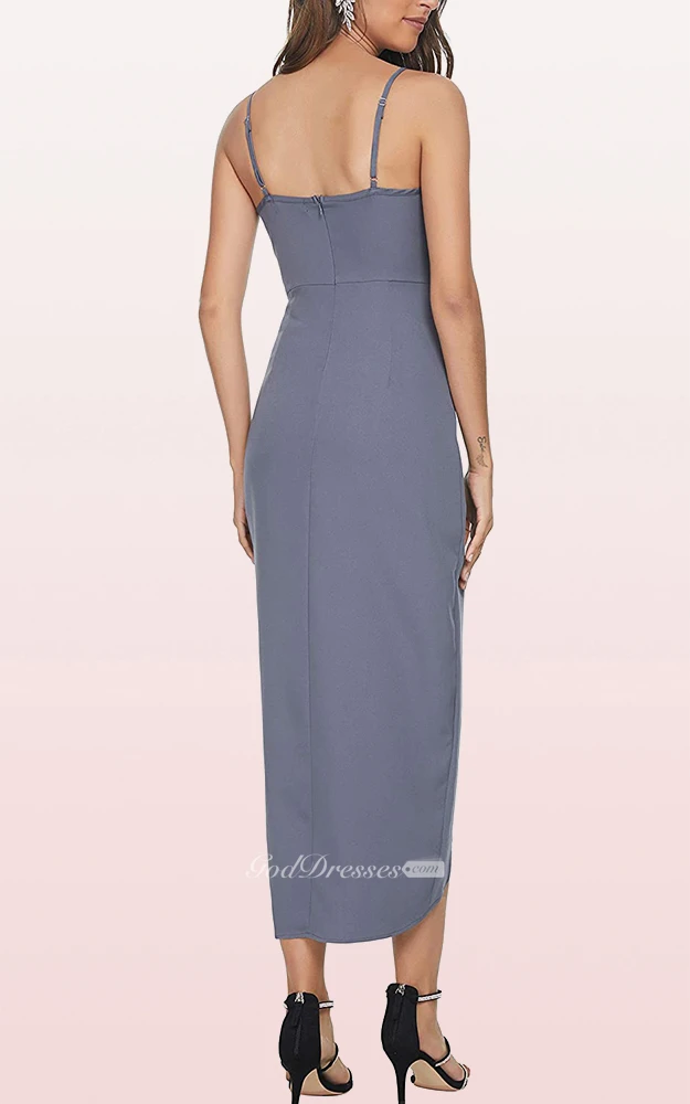 Sexy Chiffon V-neck Bodycon Cocktail Dress With Draping and Split Front