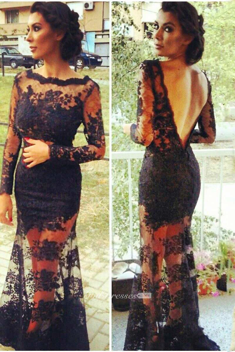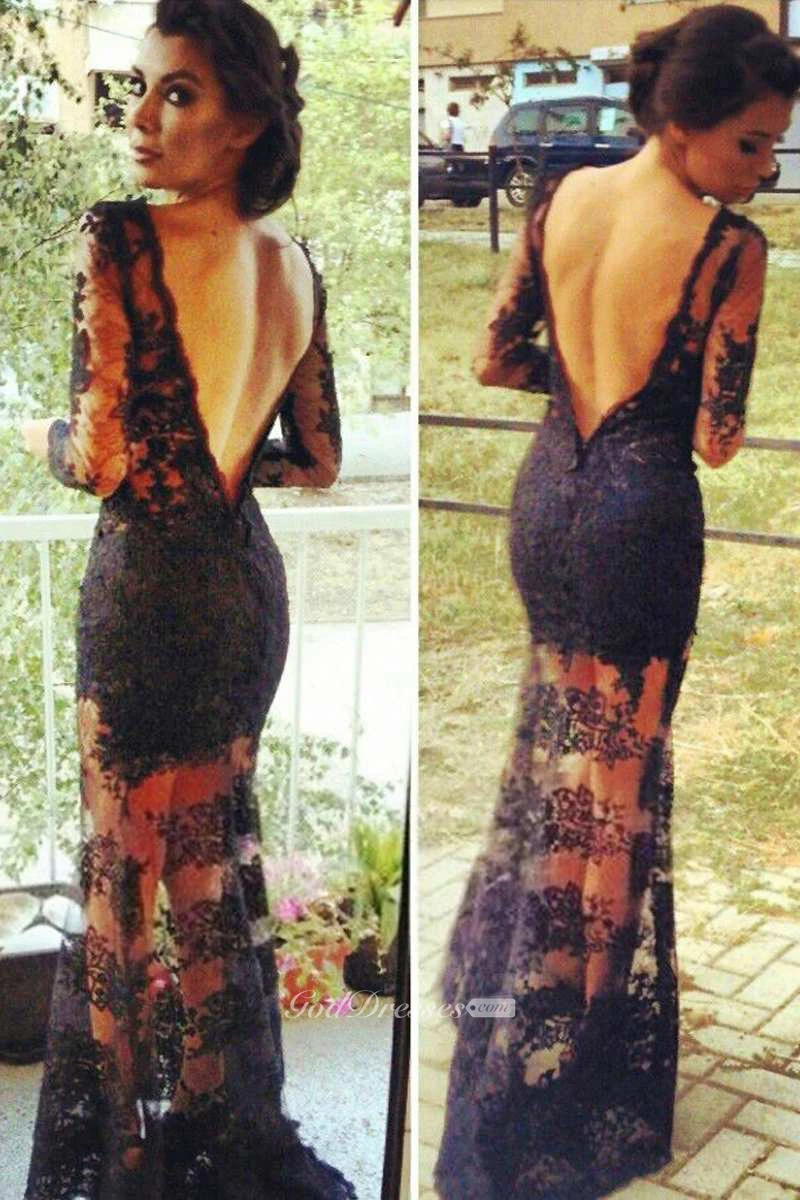 Sexy Deep V Back Long Lace Sleeve Dress