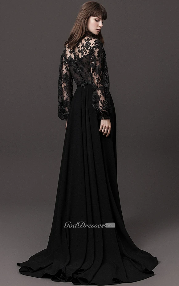 Sexy Floor-length Long Sleeve Chiffon A Line Guest Dress with Ruching