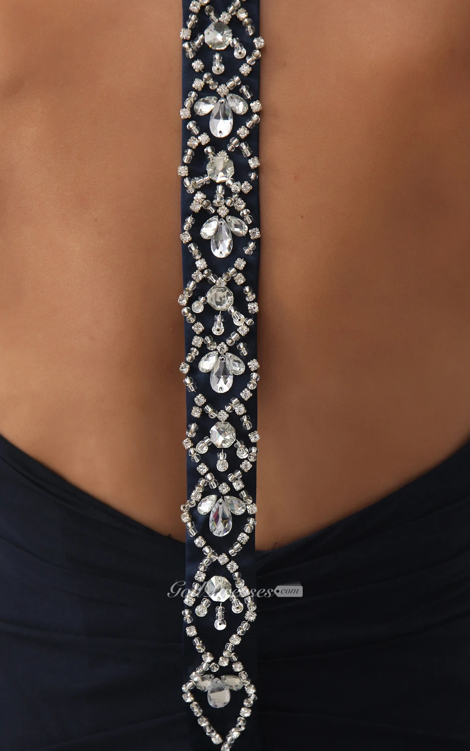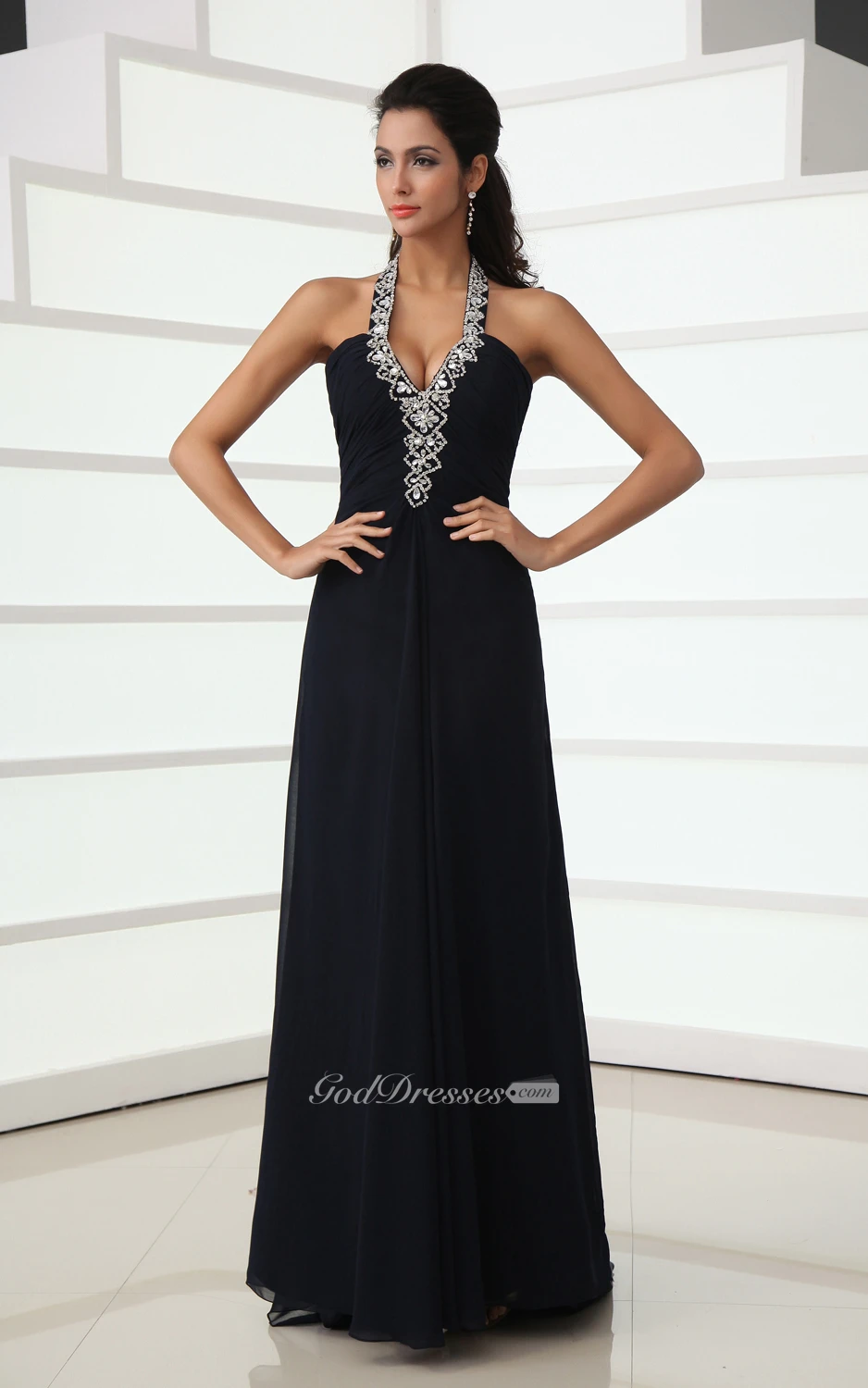 Sexy Halter A-Line Chiffon Gown With Back Crystal Strap