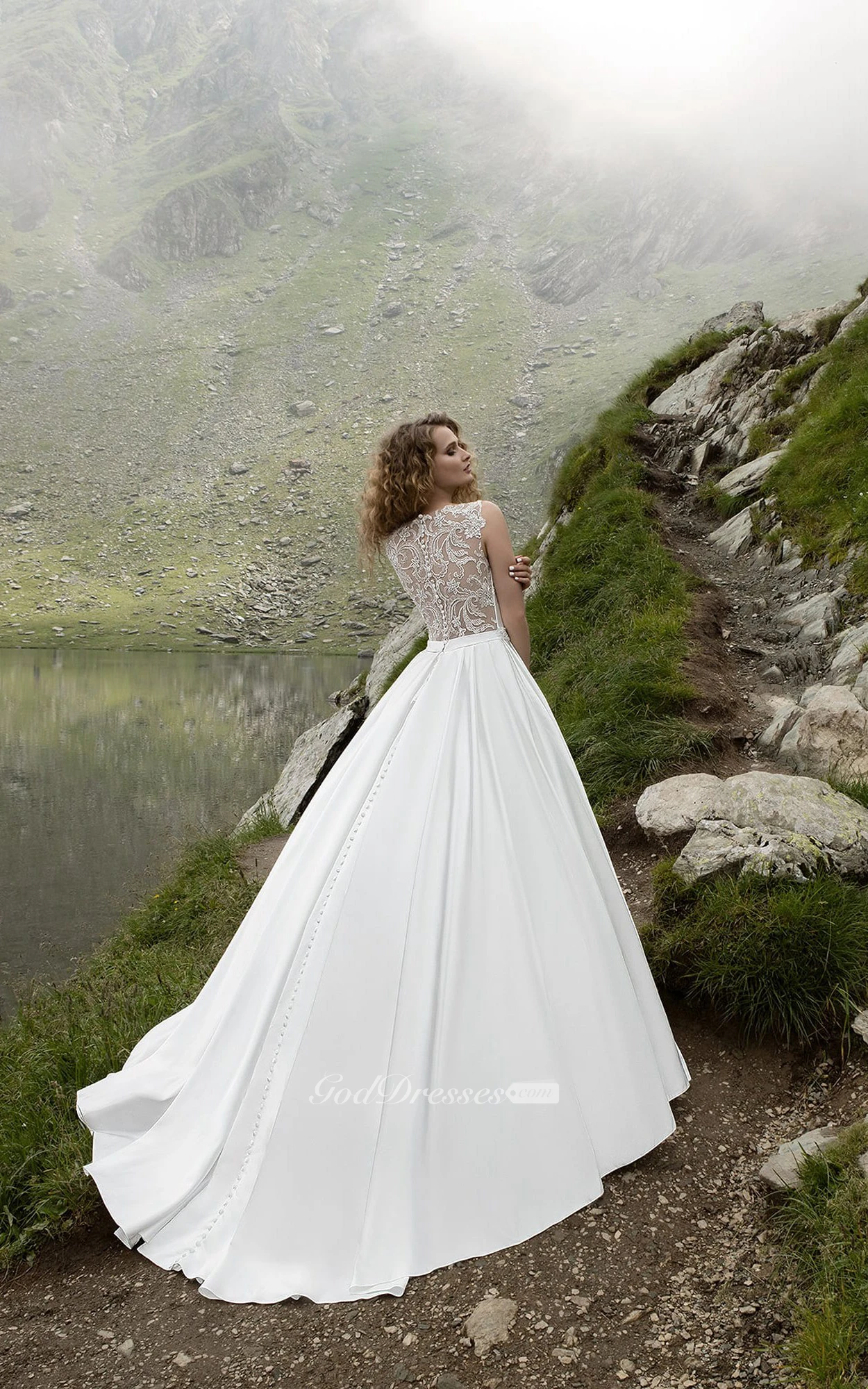Sexy Illusion Back Satin A-line Dress With Crystal Detailing