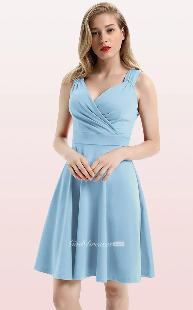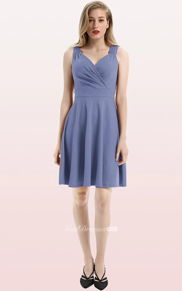 Sexy Jersey V-neck A Line Sleeveless Prom Guest Dress With Ruffles