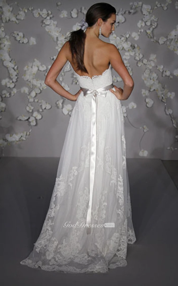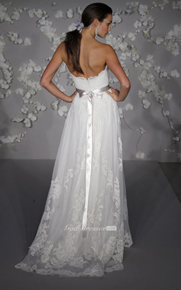 Sexy Lace Applique Floor Length Dress With Crystal Jeweled Ribbon