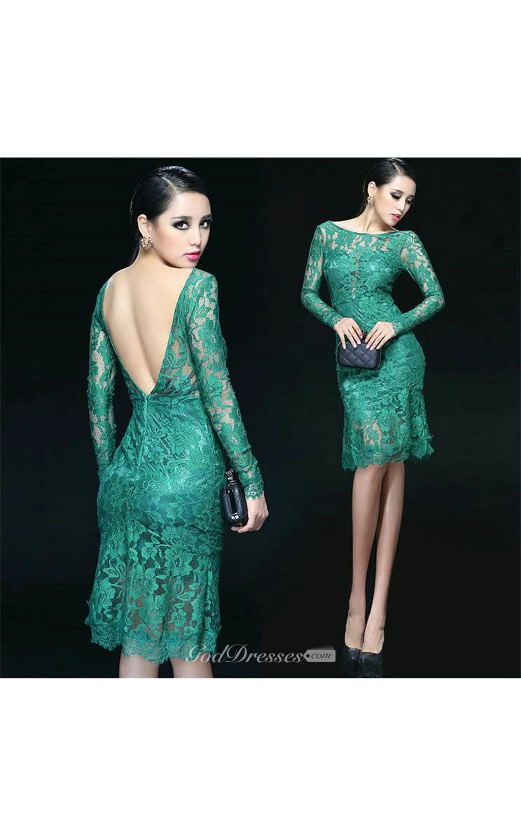 Sexy Lace Appliques Knee-Length Dresses With Beautiful Full Sleeve Backless