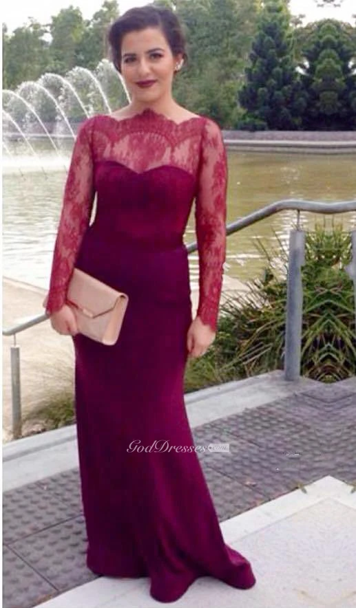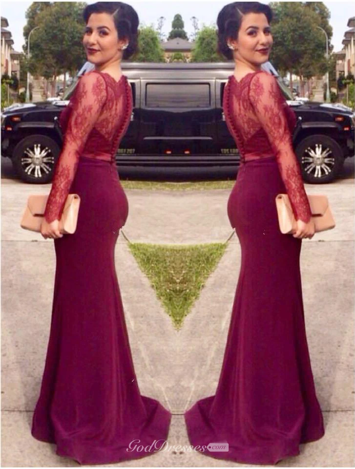 Sexy Lace Mermaid Illusion Evening Dress Zipper Button Back