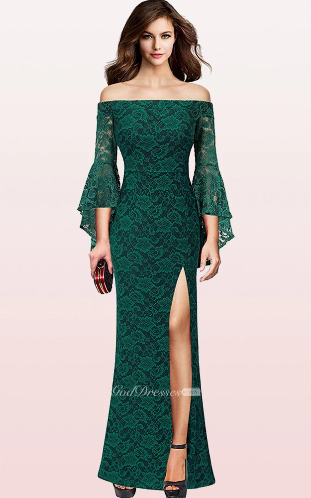 Sexy Lace Off-the-shoulder Mermaid Guest Evening Dress With Split Front