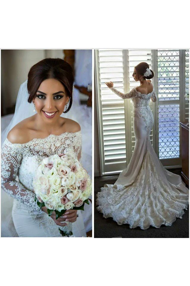 Sexy Off-the-shoulder Long Sleeve Mermaid Wedding Dress With Lace Beadings
