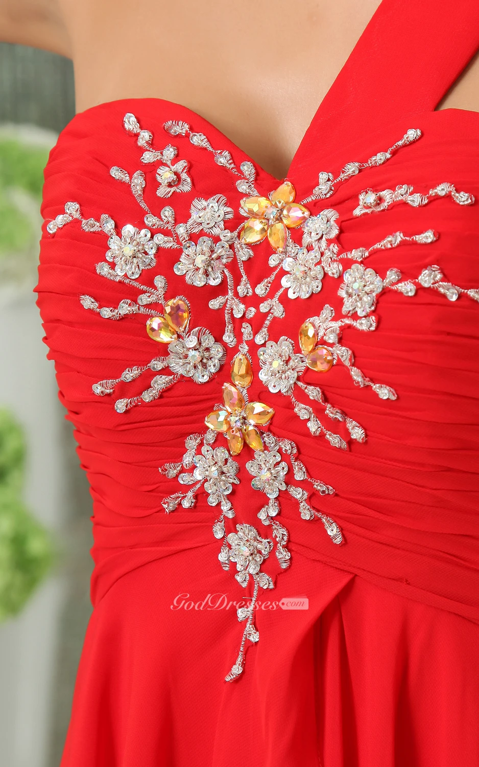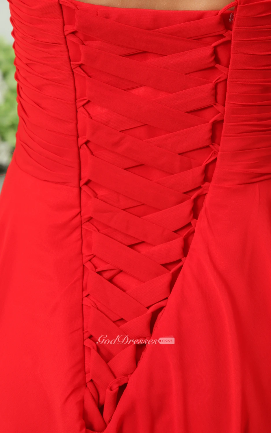 Sexy One-Shoulder Sweetheart Layered Chiffon Gown With Lace Up