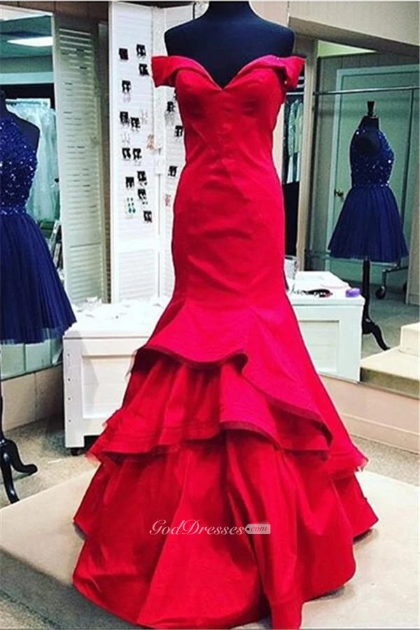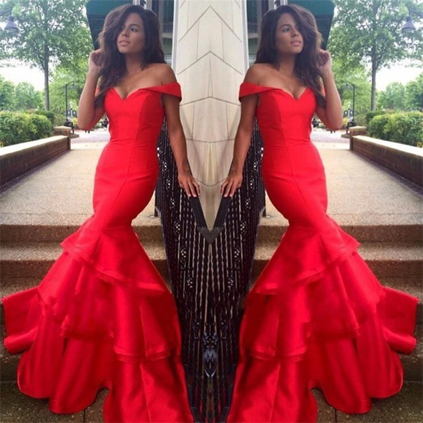 Sexy Red Mermaid Prom Dress Off the Shoulder With Ruffles
