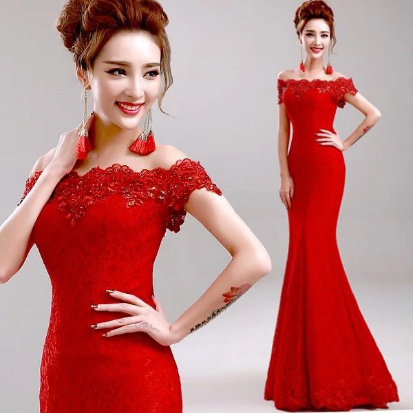 Sexy Red Off the Shoulder Mermaid Prom Dress With Lace Beadings