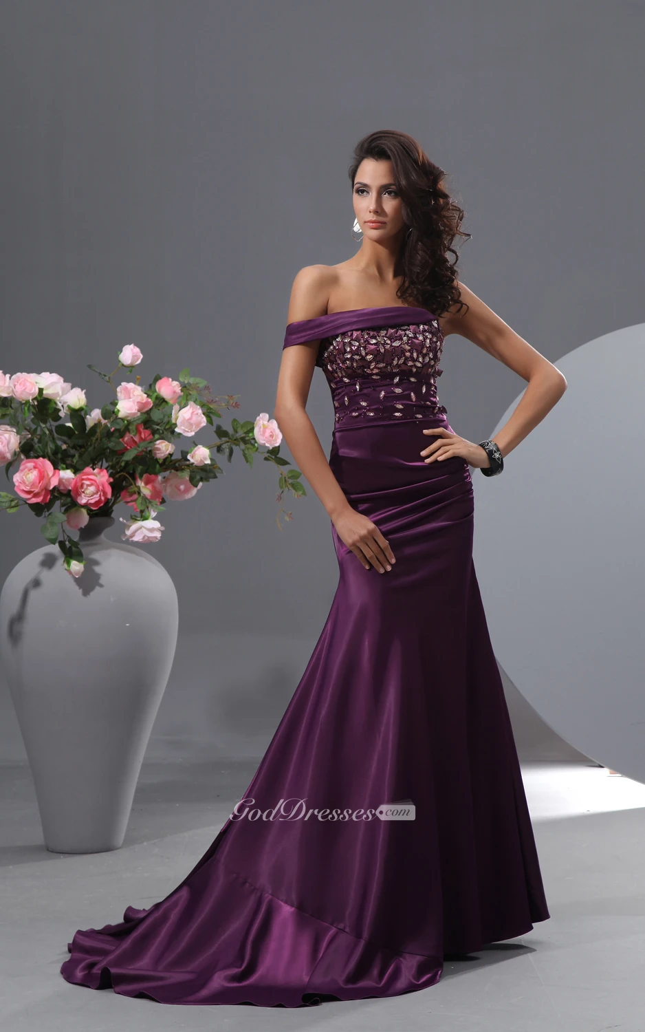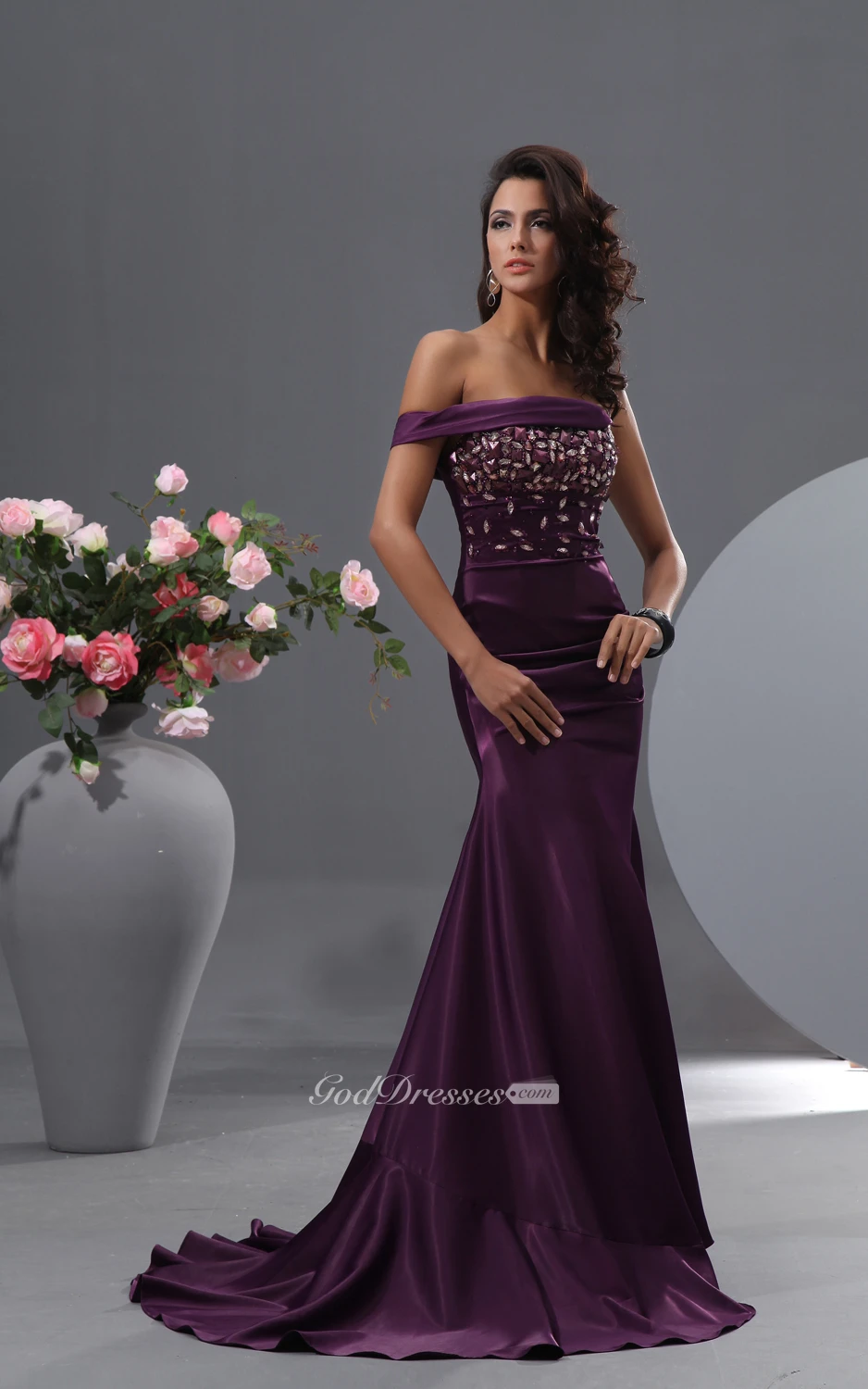 Sexy Single Off Shoulder Stretch Satin Mermaid Gown With Crystal