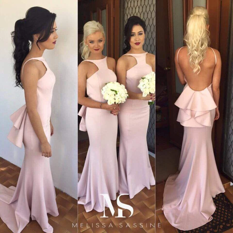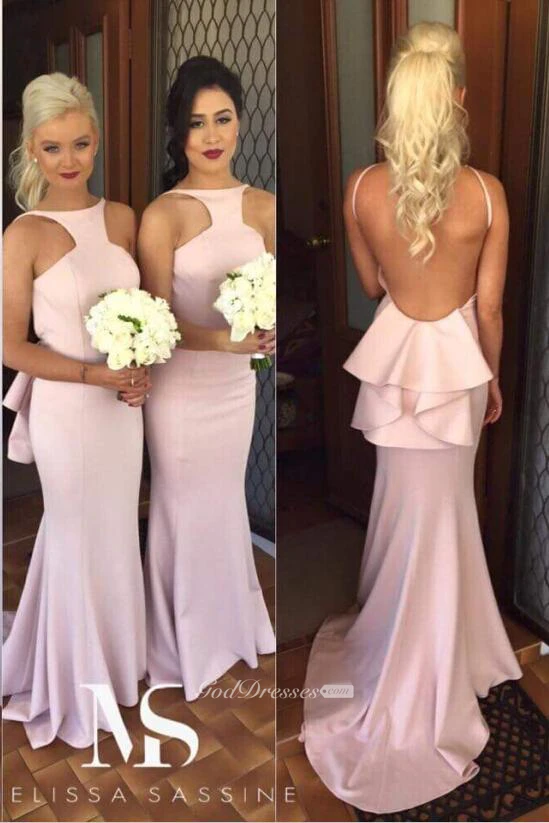 Sexy Sleeveless Ruffles Mermaid Bridesmaid Dress Open Back