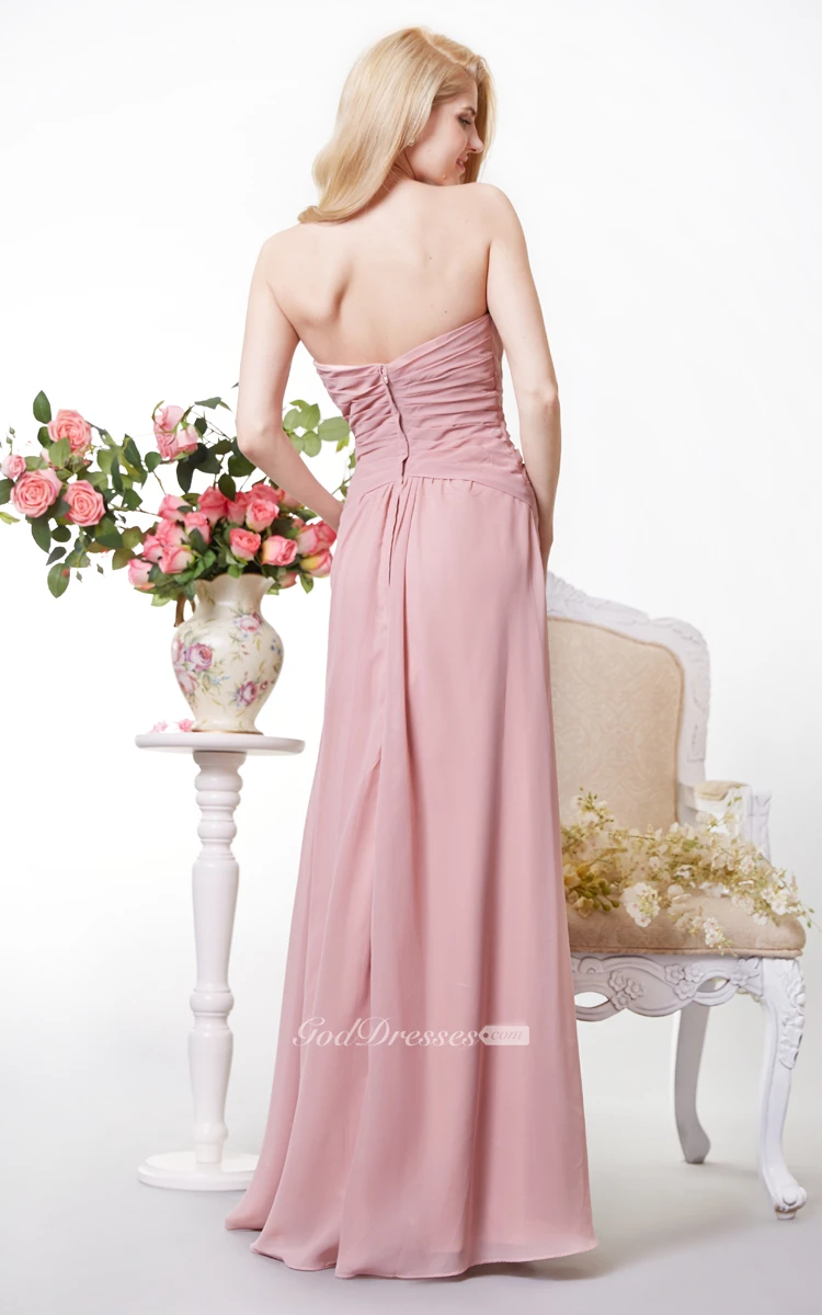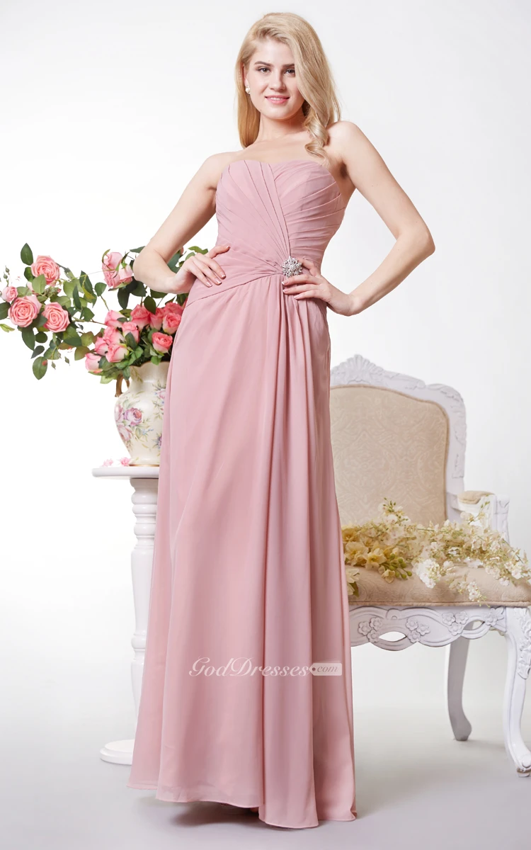 Sexy Strapless A-line Chiffon Long Dress With Beadings