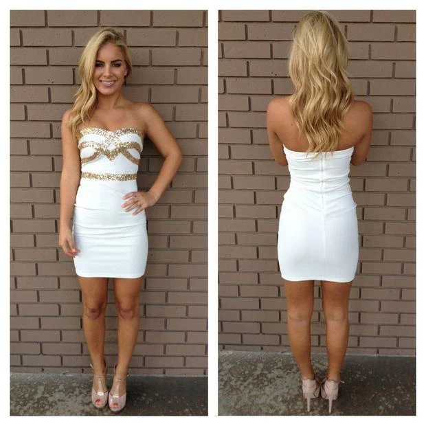 Sexy Strapless Sequined Short Cocktail Dress Bodycon Sleeveless Zipper