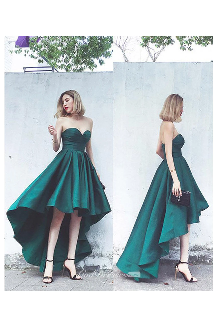 Sexy Sweetheart Empire Satin High-Low Lace-Up Gown With Ruching