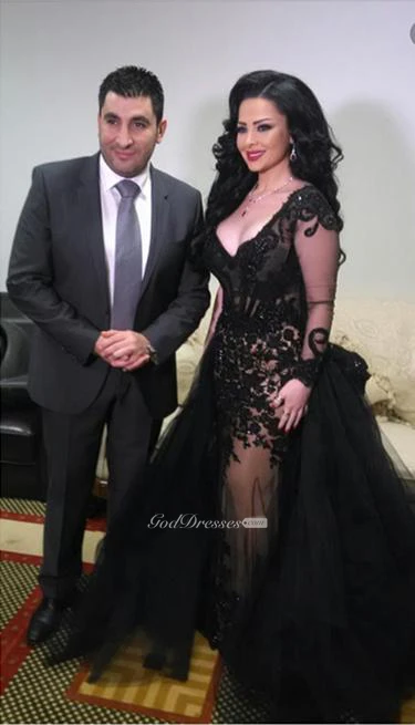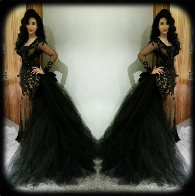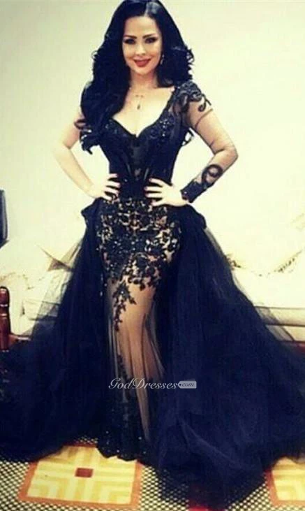 Sexy Tulle Lace Appliques Evening Dress Long Sleeve Court Train
